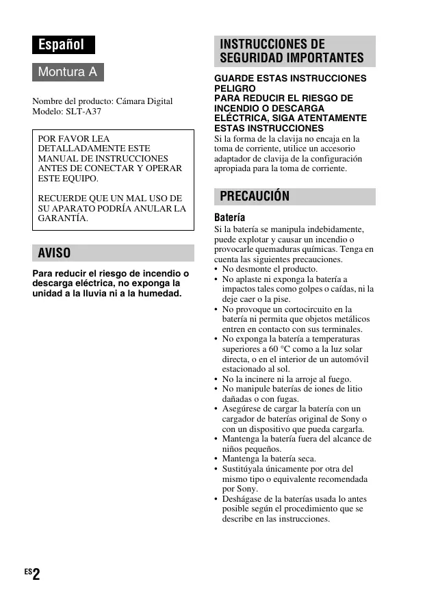 Encuentra gratis el manual del aparato A37, ALPHA SLT-A37 SONY en formato PDF.
