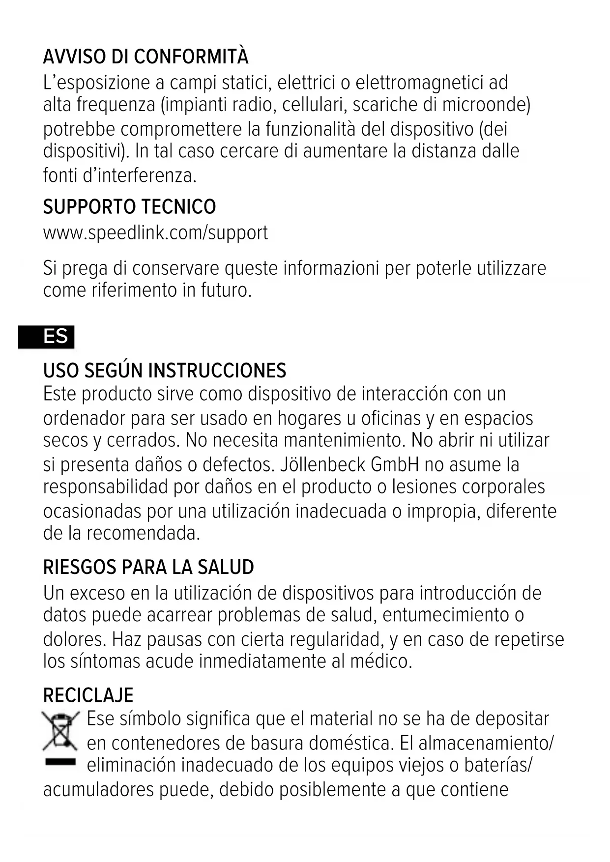 www.speedlink.com/support Conserve esta información para consultarla en el futuro.