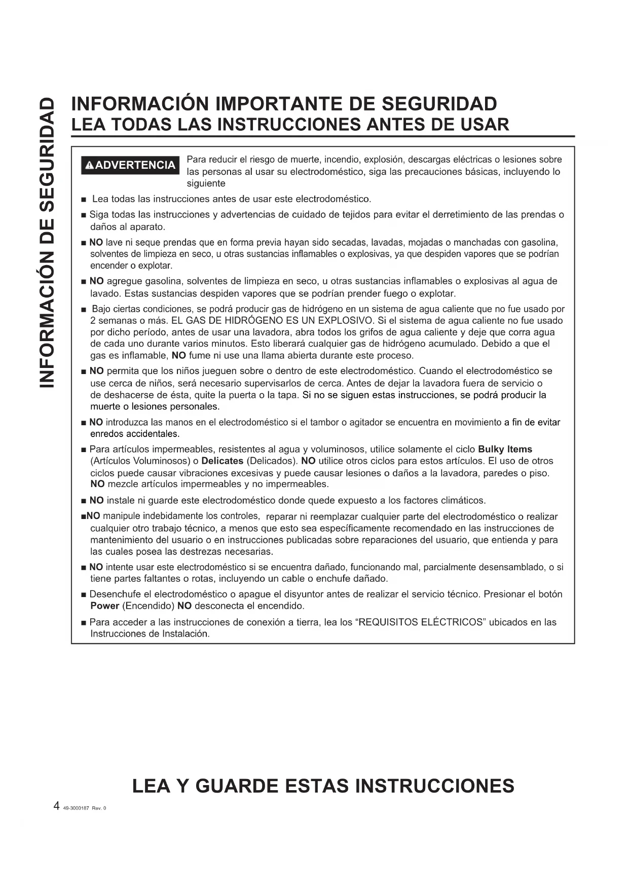 Escriba el número de modelo y de serie aquí: N.º de modelo # __________ N.º de serie # ____________ Puede encontrarlos bajo la puerta de la lavadora. INSTRUCCIONES DE SEGURIDAD .........................4
