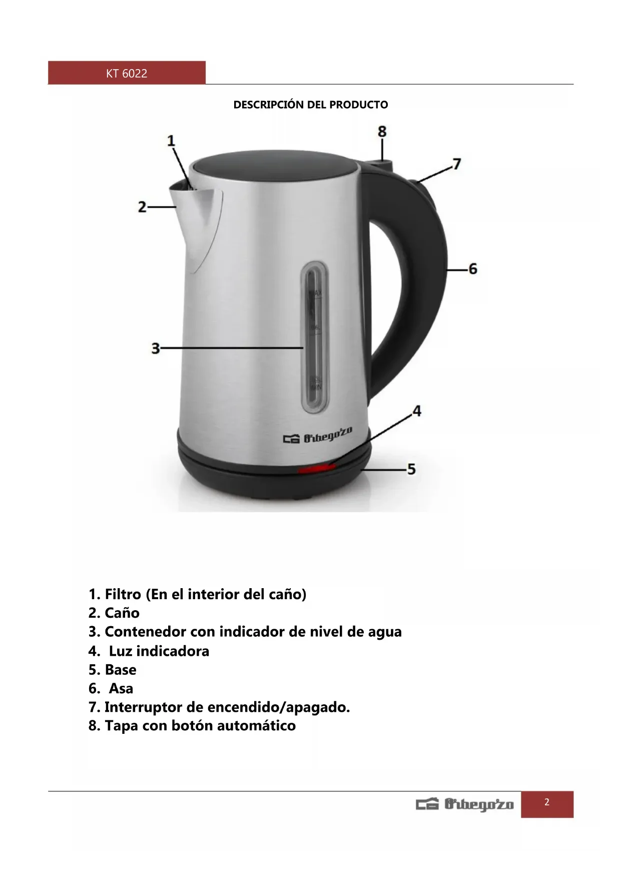Encuentra gratis el manual del aparato KT 6022 Orbegozo en formato PDF.