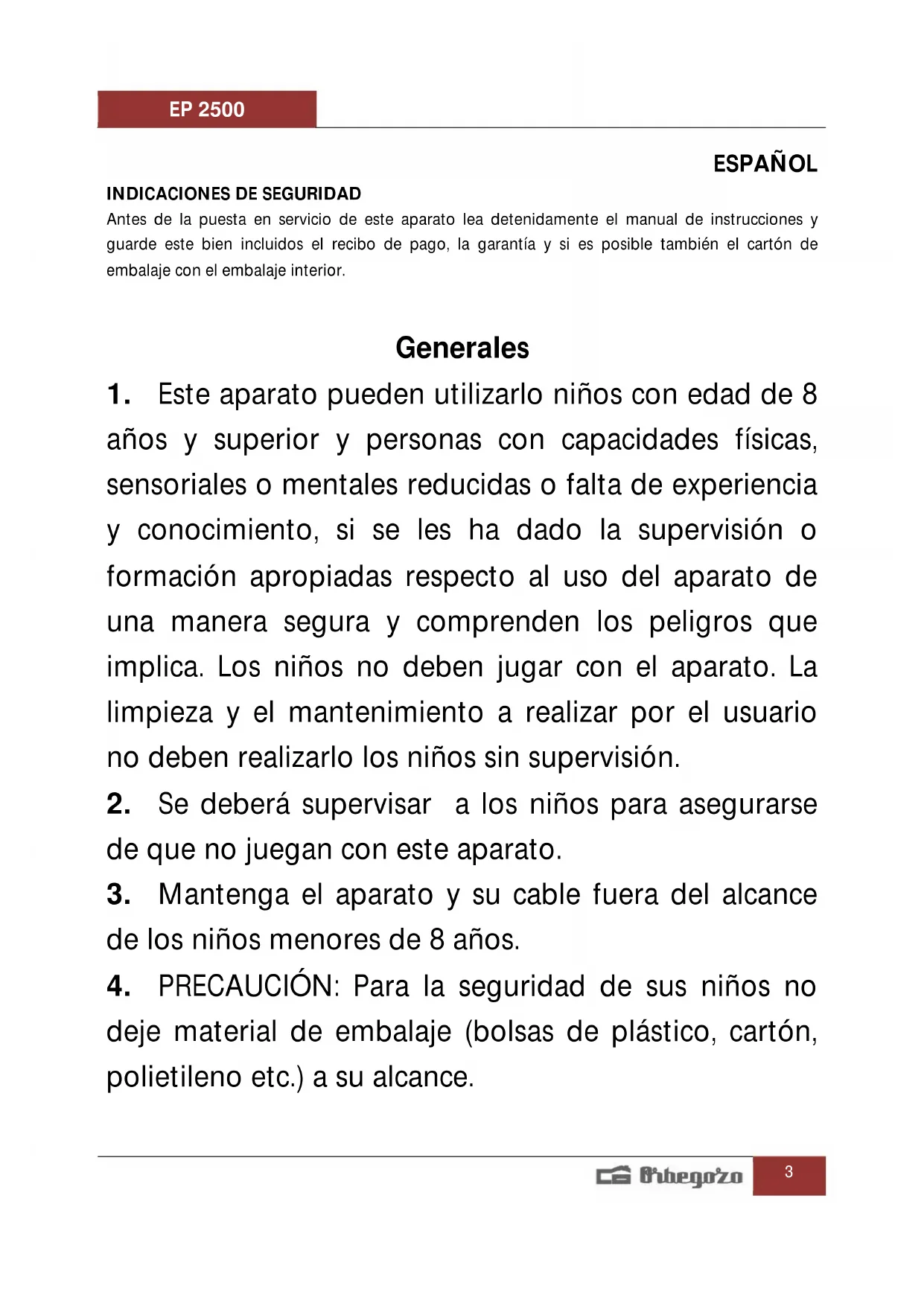 MANUAL DE USUARIO EP 2500 Orbegozo