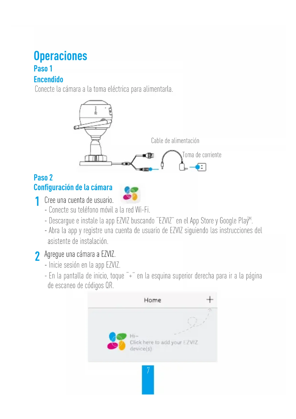 Cree una cuenta de usuario. - Conecte su teléfono móvil a la red Wi-Fi. - Descargue e instale la app EZVIZ buscando “EZVIZ” en el App Store y Google Play