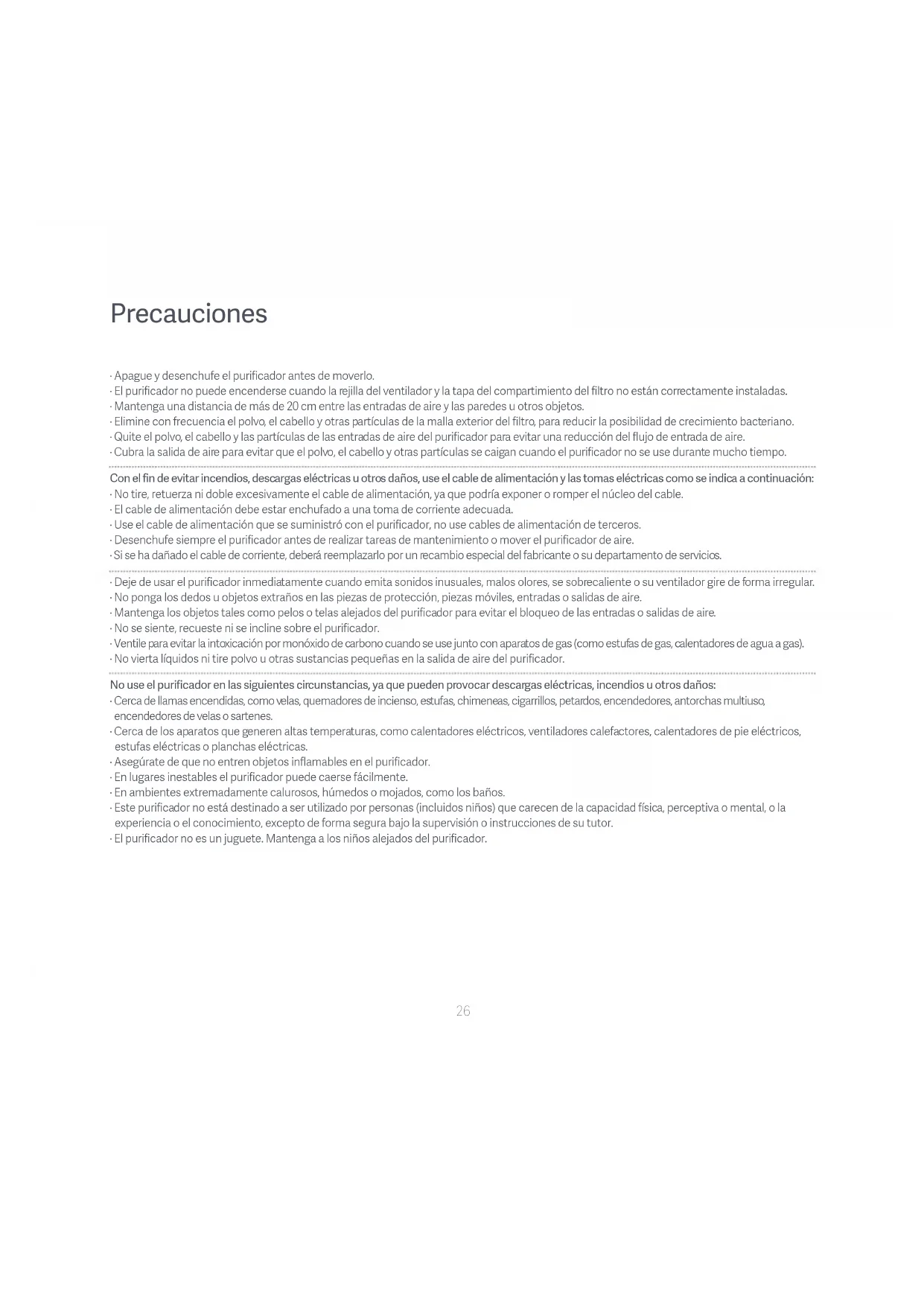 - Este purificador no está destinado a ser utilizado por personas (incluidos niños) que carecen de la capacidad física, perceptiva o mental, o la experiencia o el conocimiento, excepto de forma segura bajo la supervisión o instrucciones de su tutor.