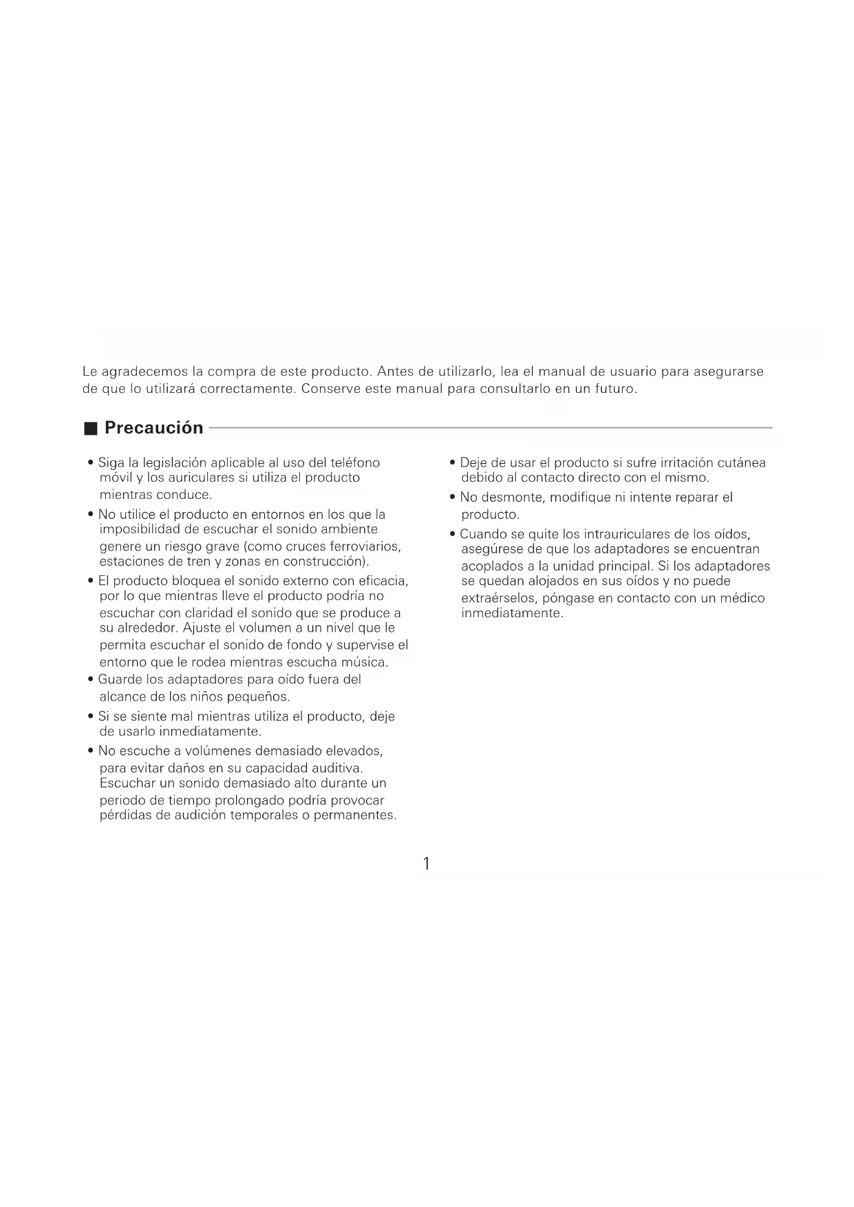 - Cuando utilice el producto en un entorno seco podría experimentar una sensación de hormigueo en las orejas. Esta sensación está provocada por la electricidad estática acumulada en su cuerpo, no por un fallo de funcionamiento del producto.