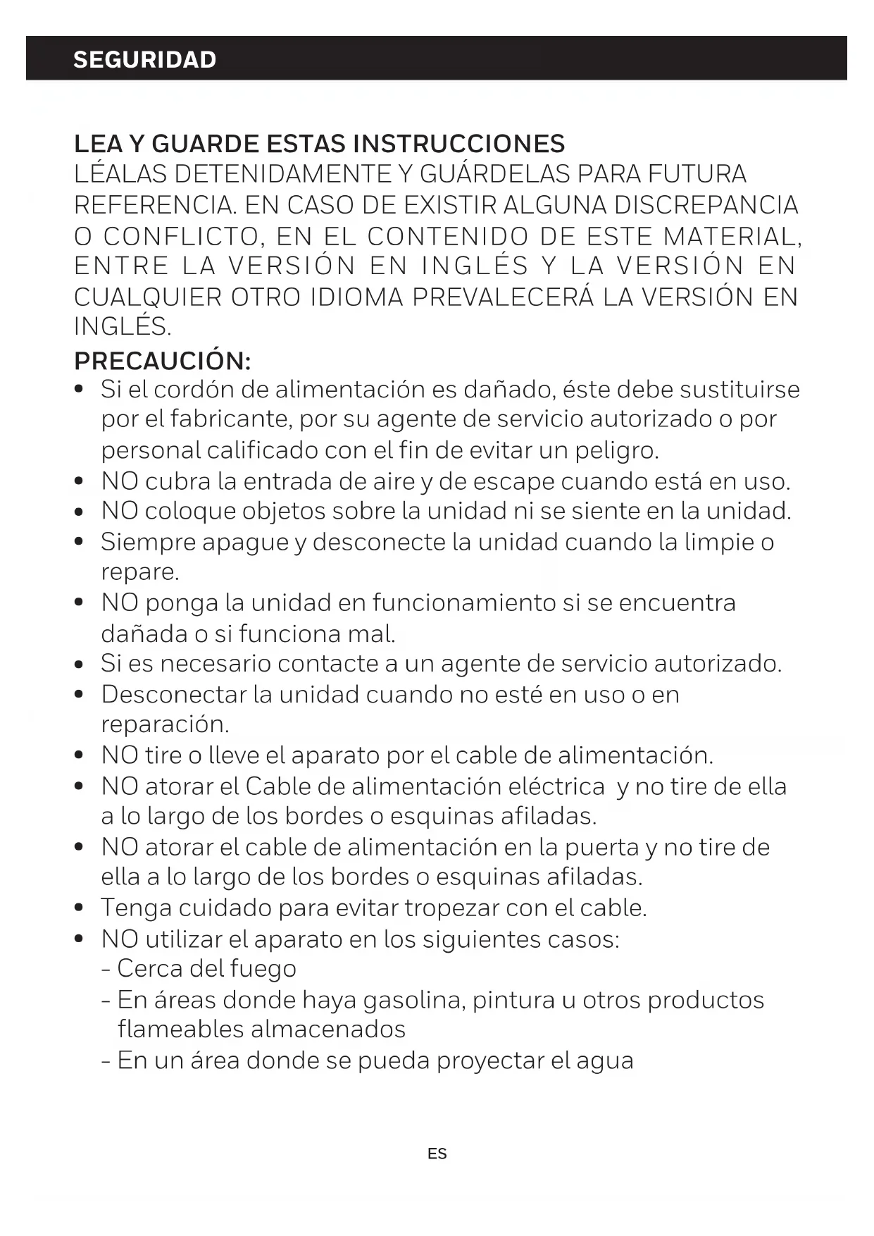 LÉALAS DETENIDAMENTE Y GUÁRDELAS PARA FUTURA REFERENCIA. EN CASO DE EXISTIR ALGUNA DISCREPANCIA O CONFLICTO, EN EL CONTENIDO DE ESTE MATERIAL, ENTRE LA VERSIÓN EN INGLÉS Y LA VERSIÓN EN CUALQUIER OTRO IDIOMA PREVALECERÁ LA VERSIÓN EN INGLÉS. PRECAUCIÓN: