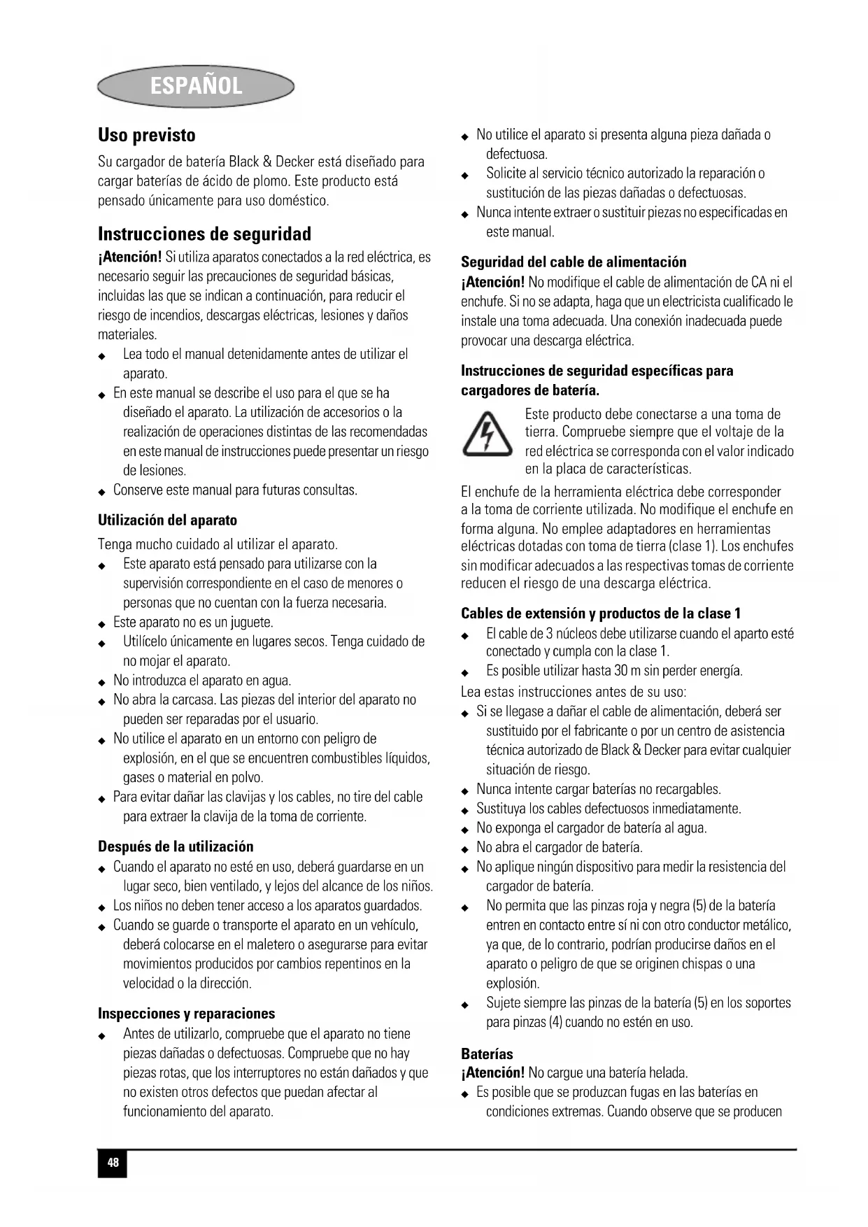 Descarga las instrucciones para tu Cargador de batería en formato PDF gratis! Encuentra tus instrucciones BDV1085 - BLACK & DECKER y toma tu dispositivo electrónico nuevamente en la mano. En esta página están publicados todos los documentos necesarios para el uso de su dispositivo. BDV1085 de la marca BLACK & DECKER.