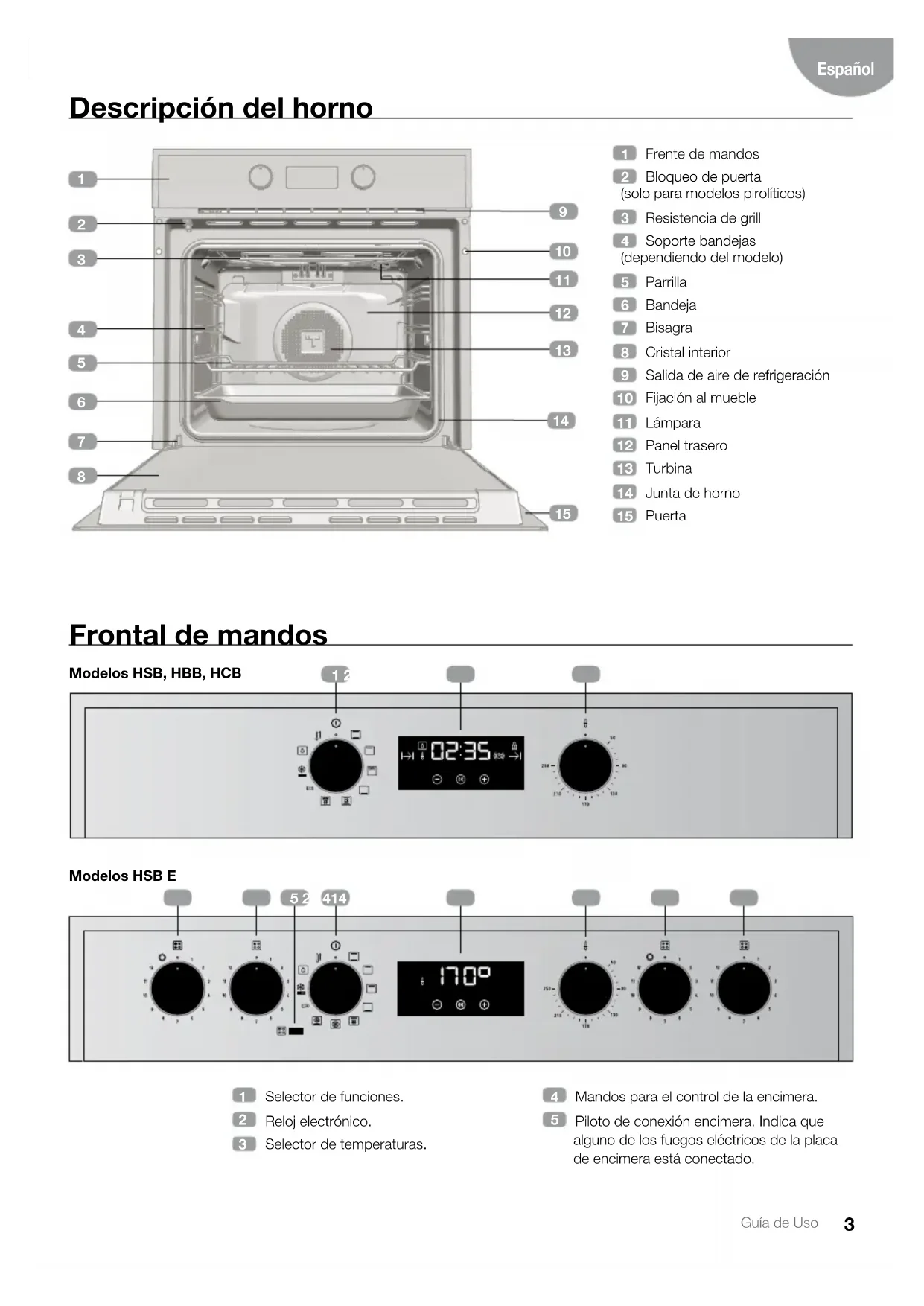 INFORMACIÓN Para una descripción de uso de cada una de las funciones, consulte la guía de cocinados incluida en su horno. Modelos HSB 630, HSB 635, HBB 635, HCB 6435 Modelos HSB 645, HSB 644, HSB 640, HSB 645 E Modelos HSB 625 P, HSB 620 P, HSB 635 P, HSB 630 P, HCB 6435 P Modelos HSB 638