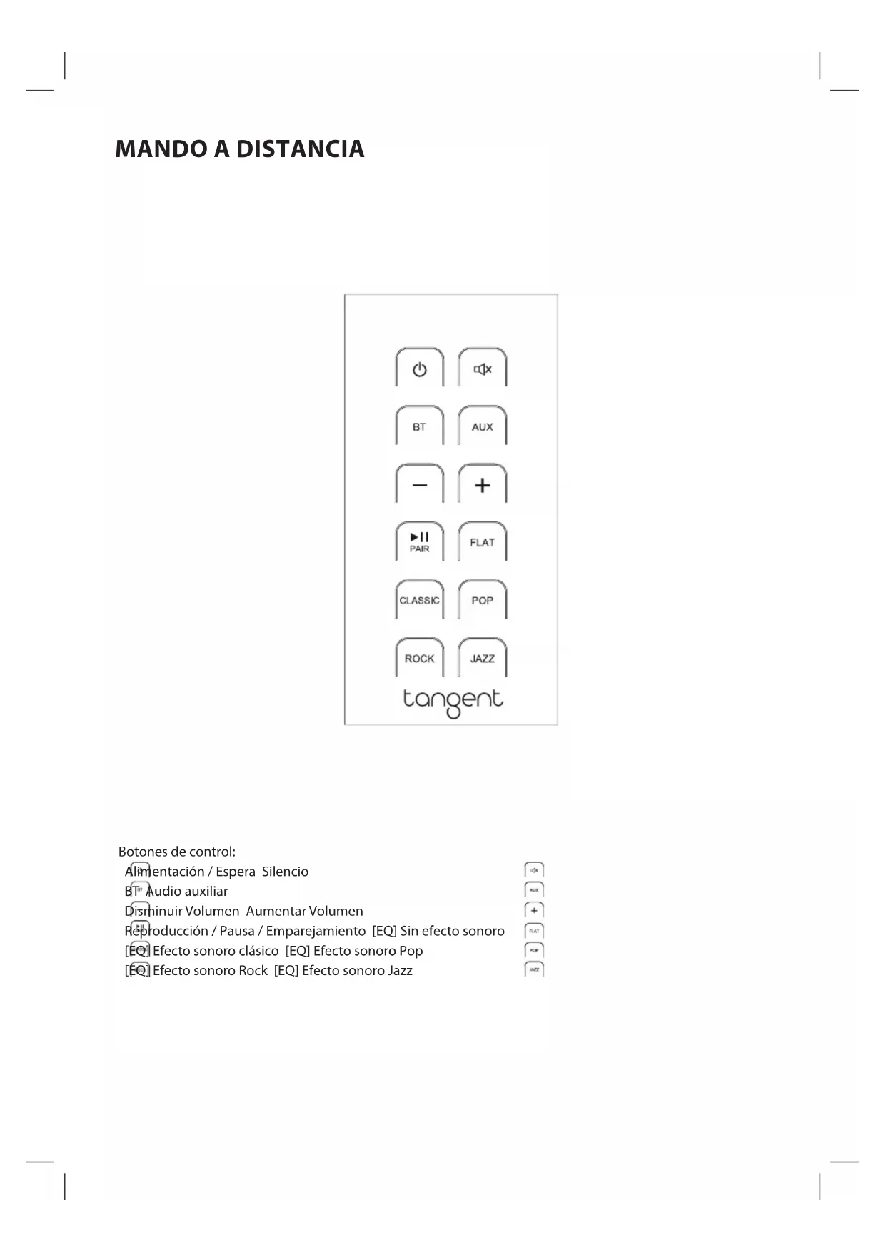 Manual del usuarioTANGENT CLASSIC BT Manual del usuario SPGracias por adquirireste producto.Lohemosdiseñadoparadarlecompleta satisfacción. El objetivo de cada producto Tangent es fundamentalmente que un diseño correcto puede producir un producto capaz de lograr excelentes prestaciones y un precio asequible. Tómese su tiempo para leer las siguientes instrucciones acerca de la seguridad.