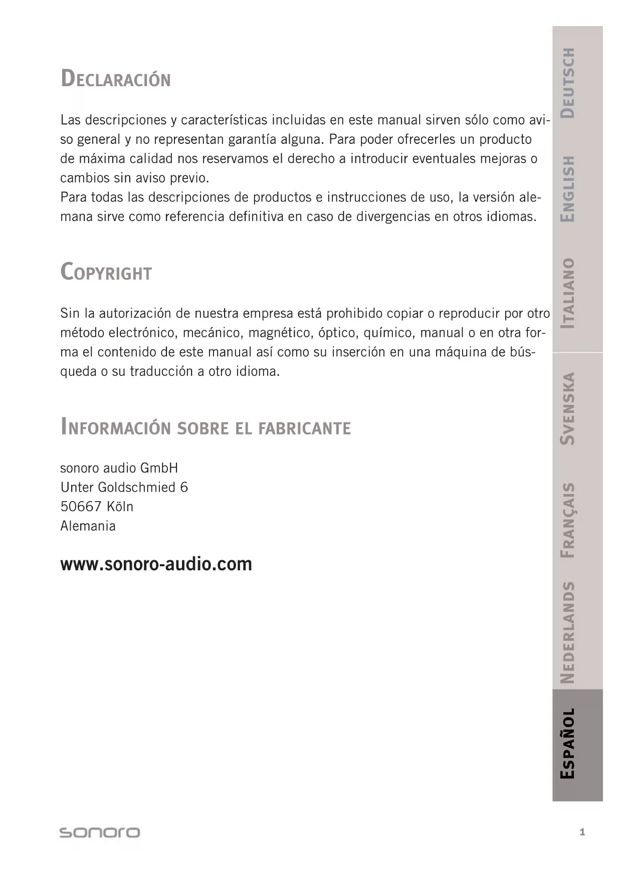 Descarga las instrucciones para tu Sistema hi-fi en formato PDF gratis! Encuentra tus instrucciones Elements - SONORO y toma tu dispositivo electrónico nuevamente en la mano. En esta página están publicados todos los documentos necesarios para el uso de su dispositivo. Elements de la marca SONORO.