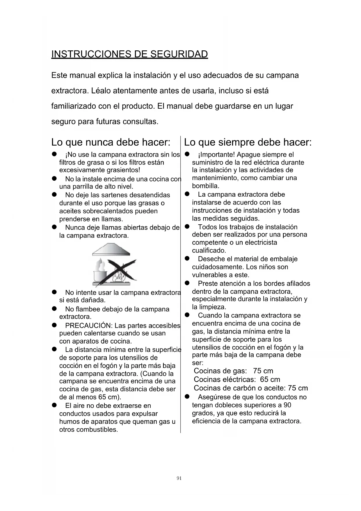 - La campana extractor de be instalarse de acuerdo con las instrucciones de instalacion y todas las medidas seguidas.