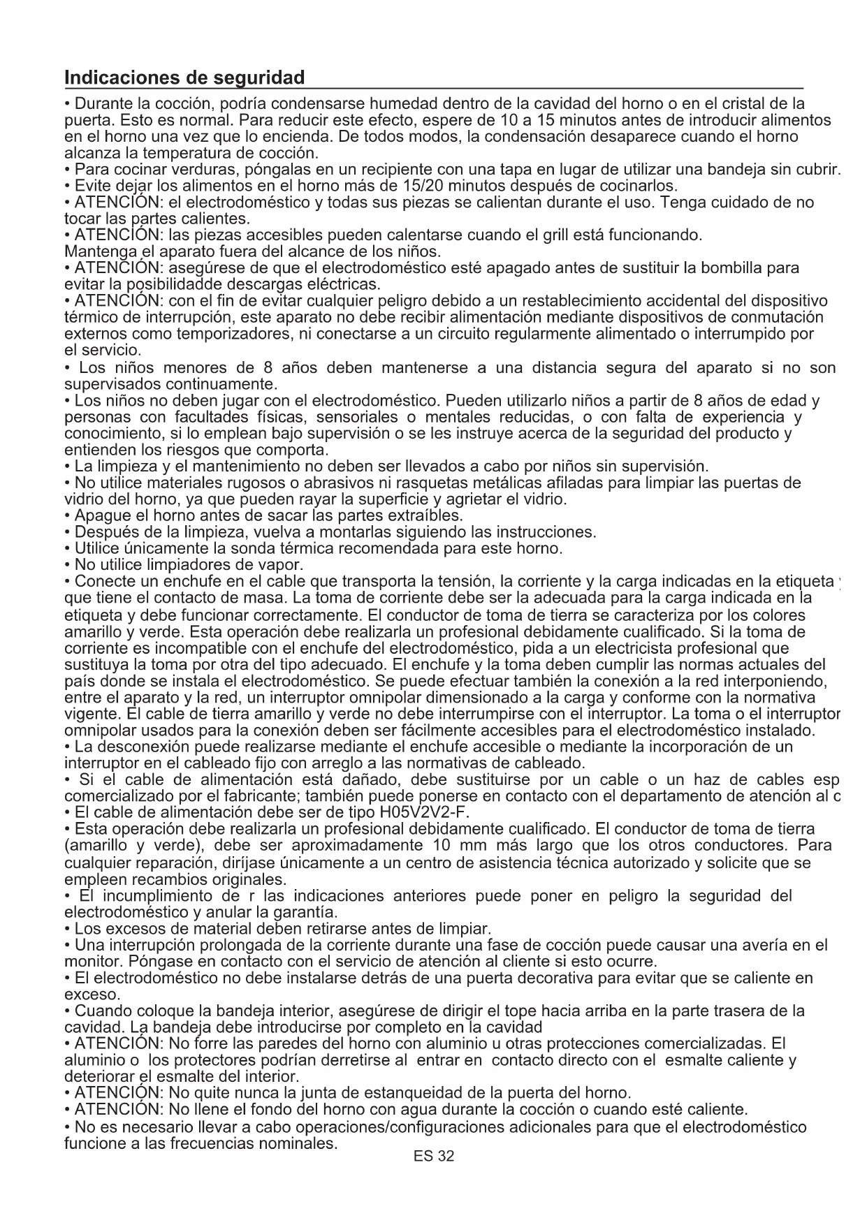 - Durante la cocción, podría condensarse humedad dentro de la cavidad del horno o en el cristal de la puerta. Esto es normal. Para reducir este efecto, espere de 10 a 15 minutos antes de introducir alimentos en el horno una vez que lo encienda. De todos modos, la condensación desaparece cuando el horno alcanza la temperatura de cocción.