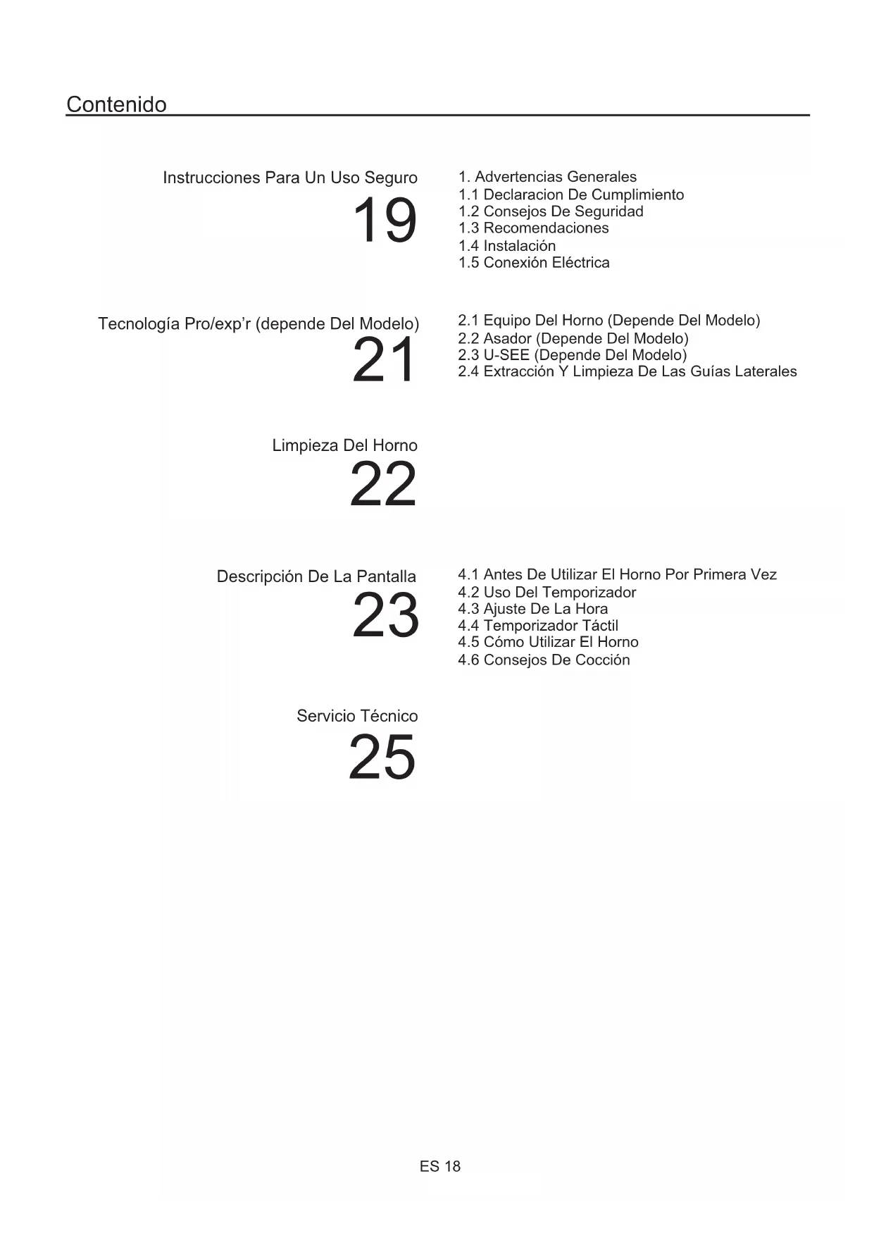Leer las instrucciones detalladamente para sacar el mejor partido del horno. Recomendamos conservar las instrucciones de instalación y utilización para futuras consultas. Antes de instalar el horno anote el número de serie por si necesitase contactar con el servicio de atención al cliente. Una vez desembalado el horno, asegurarse de que no está dañado. En caso de tener dudas, no utilizar. Contactar con una persona cualificada. Conservar el embalaje (bolsas de plástico, polietileno o clavos) fuera del alcance de los niños ya que puede ser peligroso para ellos. La compañía no se hará responsable en caso de no cumplir las instrucciones indicadas en este documento. ANTENCIÓN: Las funciones, propiedades o accesorios del horno mencionadas en este manual pueden variar dependiendo del modelo de horno. ES 202