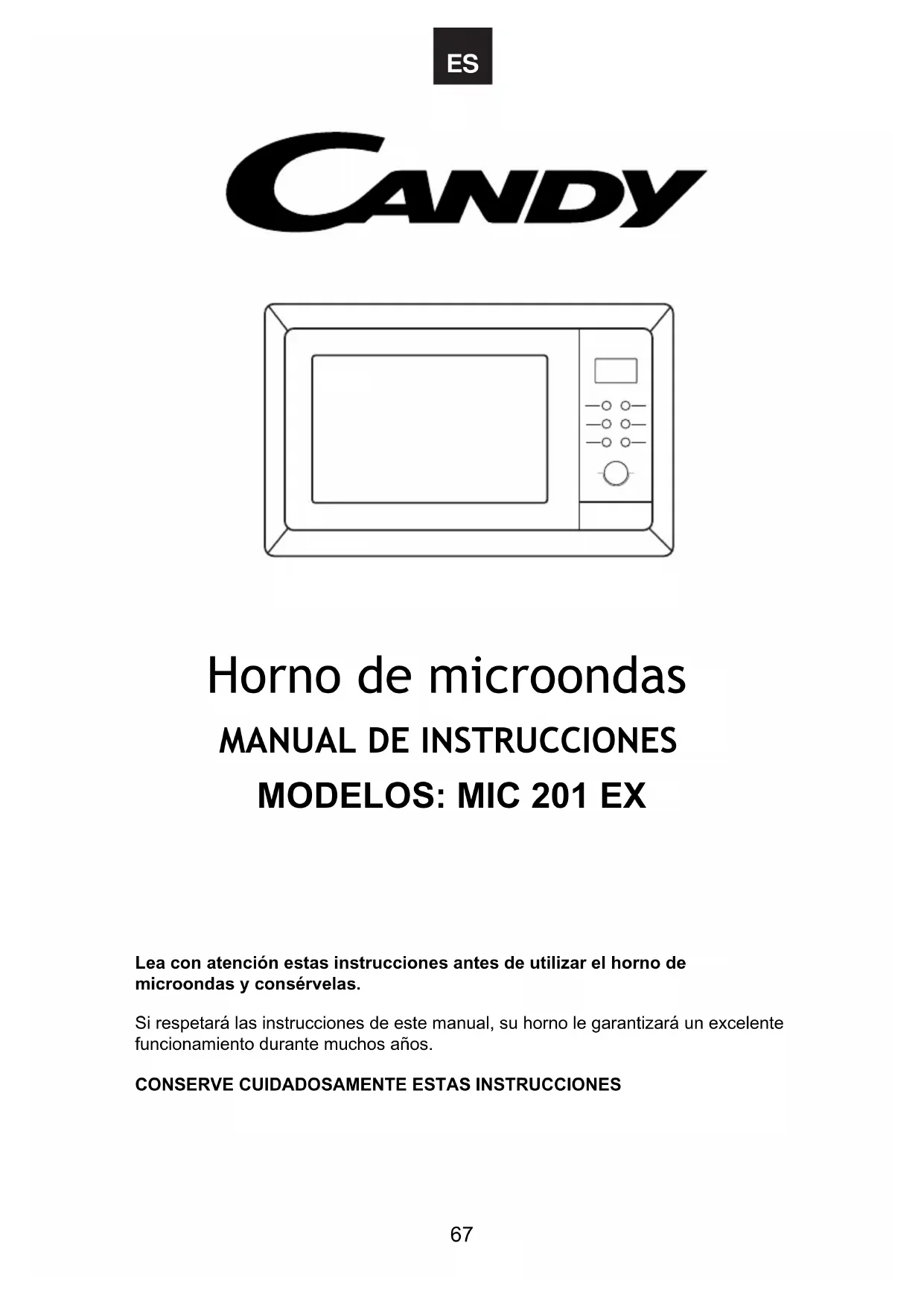 MIC201EXEE - Microondas CANDY - Manual de uso y guía de instrucciones gratis
