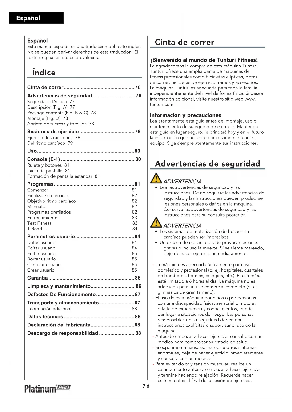MANUAL DE USUARIO Platinum PRO Treadmill 3.0 TUNTURI