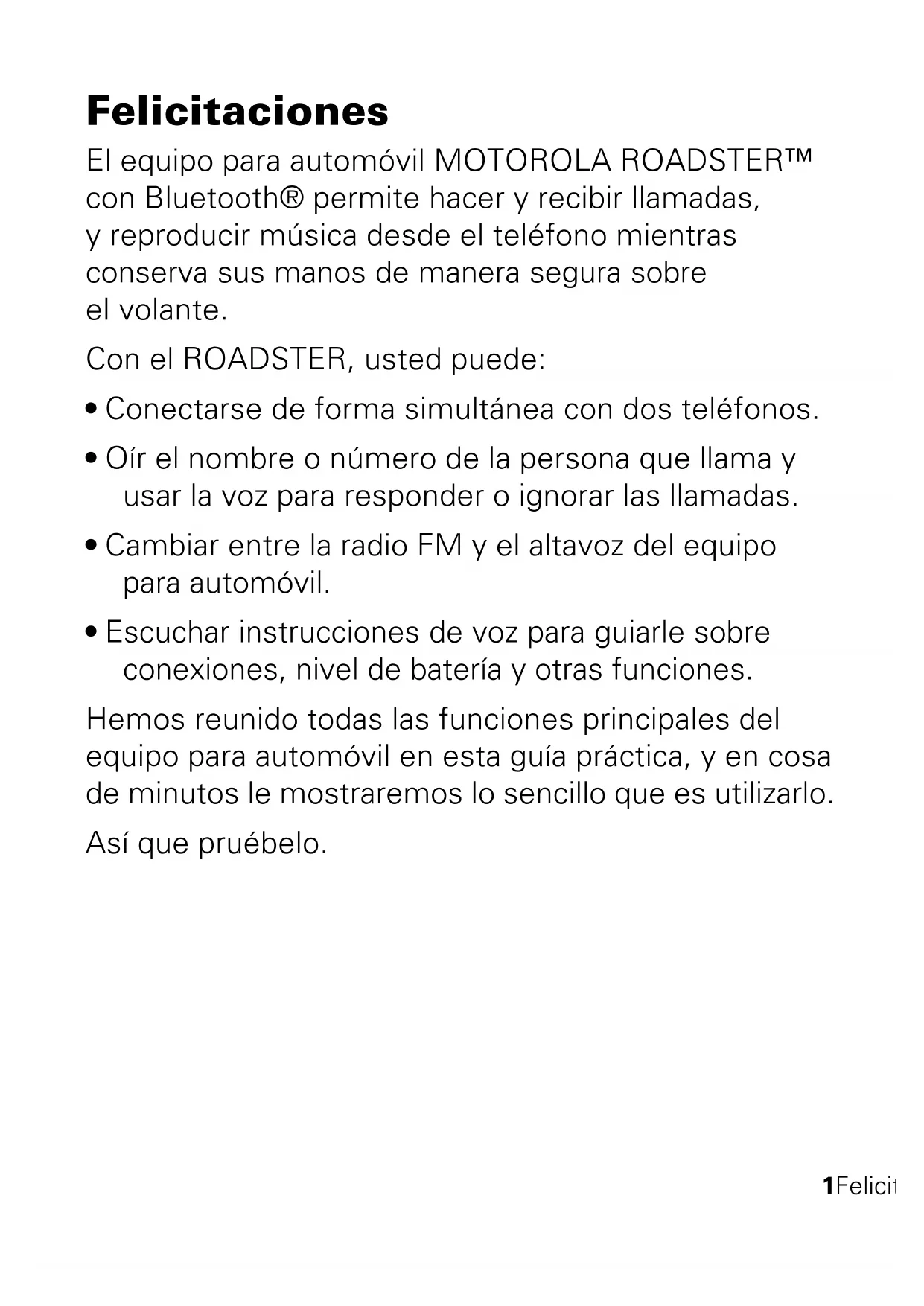 Encuentra gratis el manual del aparato Roadster 2 MOTOROLA en formato PDF.