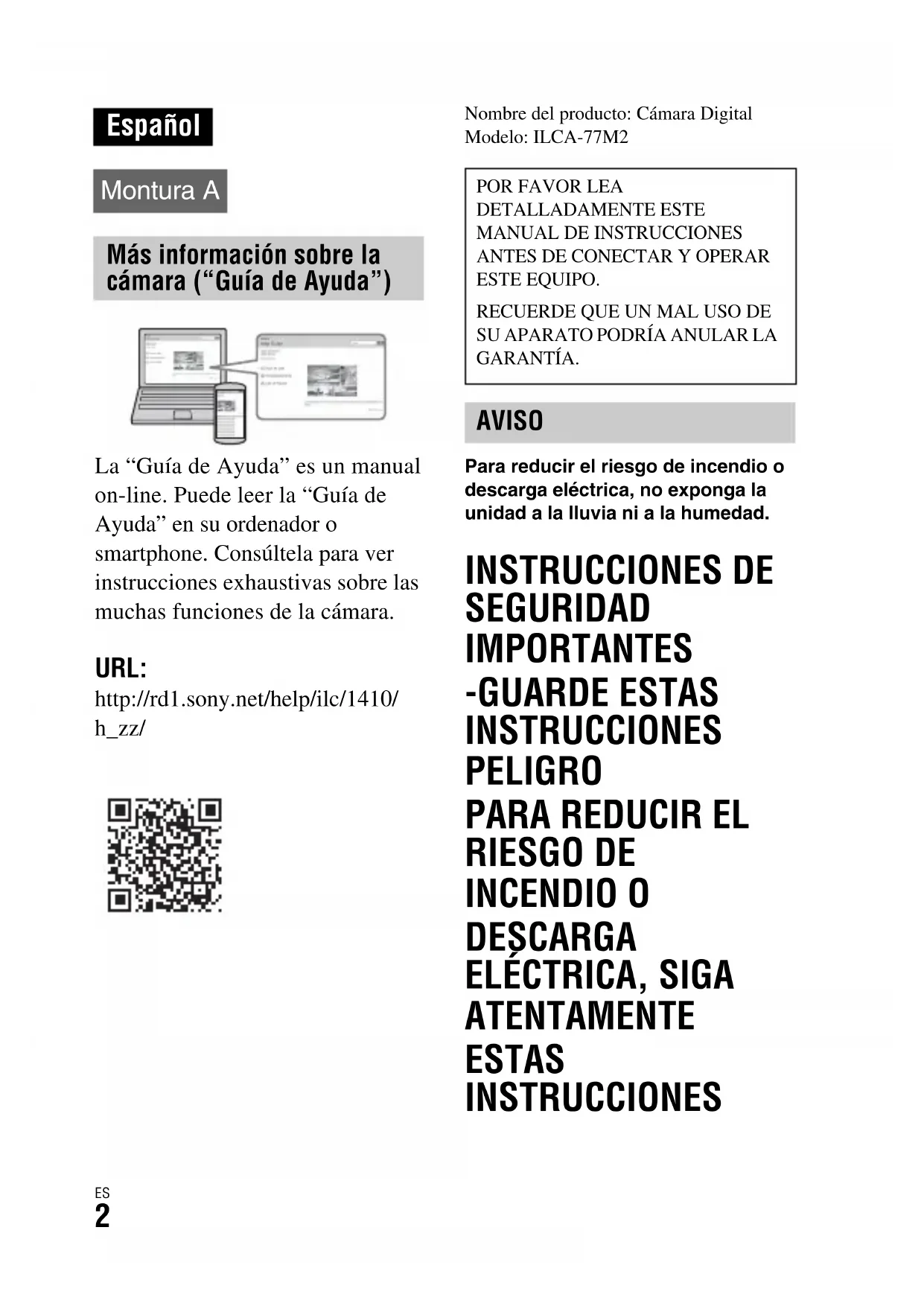ILCA77M2M - Cámara SONY - Manual de uso y guía de instrucciones gratis