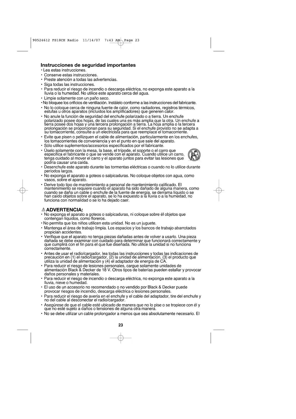 90524612 FS18CH Radio 11/14/07 7:43 AM Page 2223 Instrucciones de seguridad importantes
