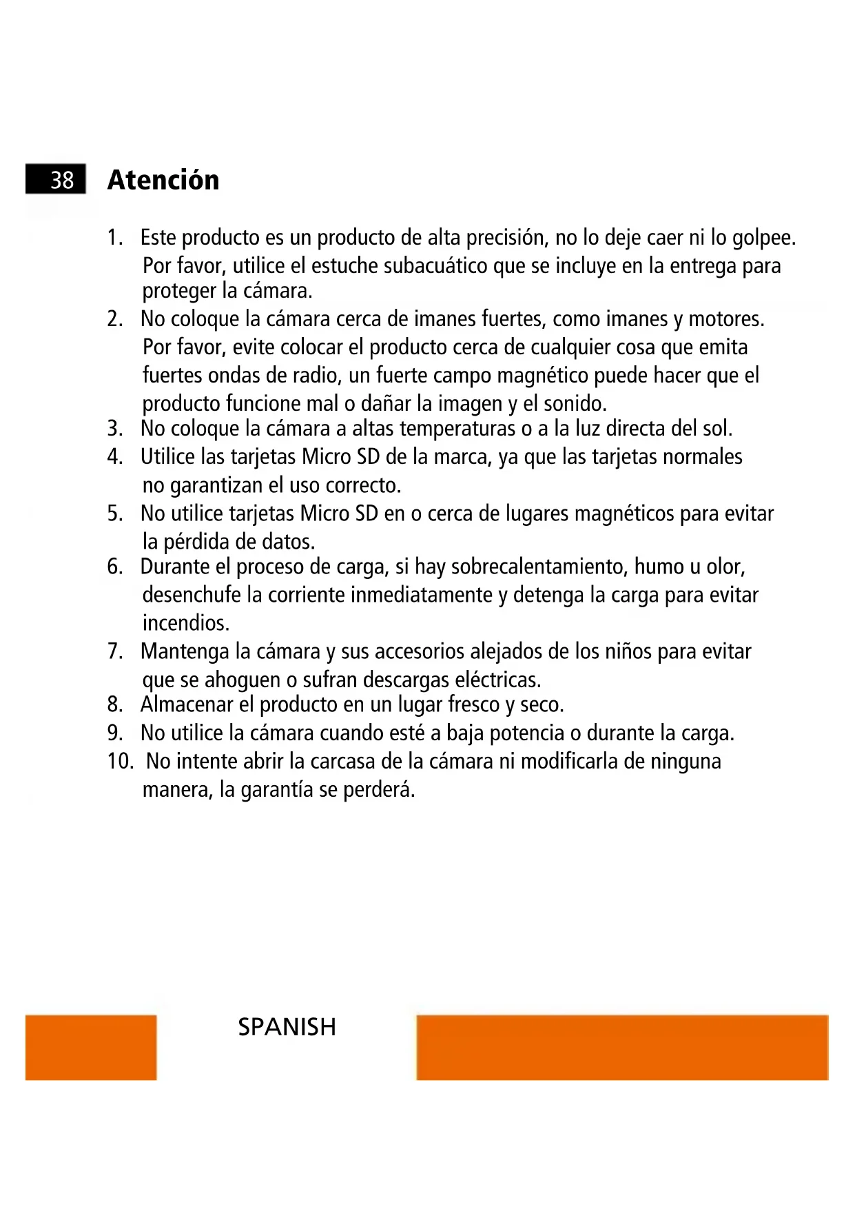 10. No intente abrir la carcasa de la cámara ni modificarla de ninguna