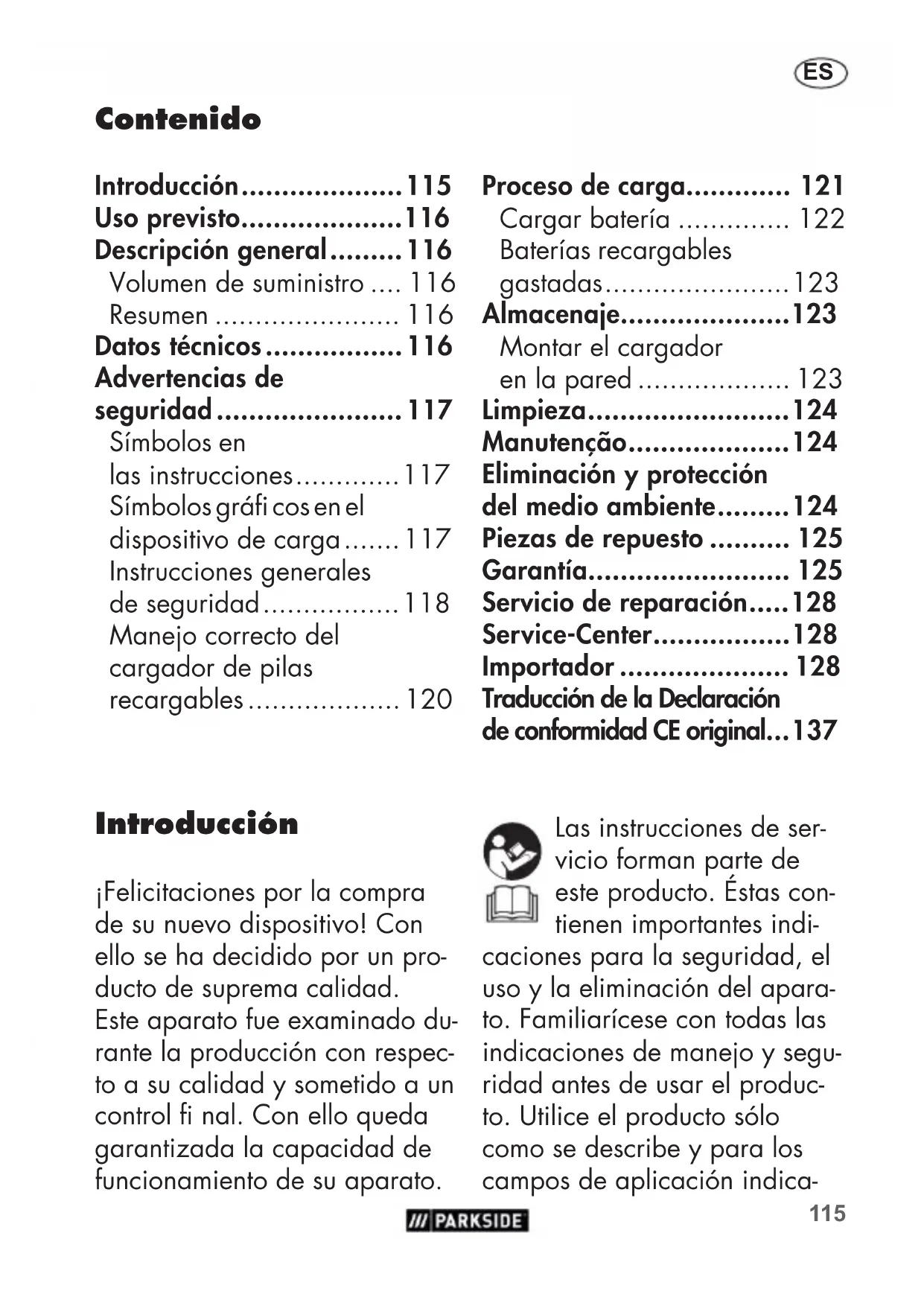 - Para la carga de la batería, utilice únicamente un carga- dor que forme parte de la serie Parkside X 12 V Team.ES