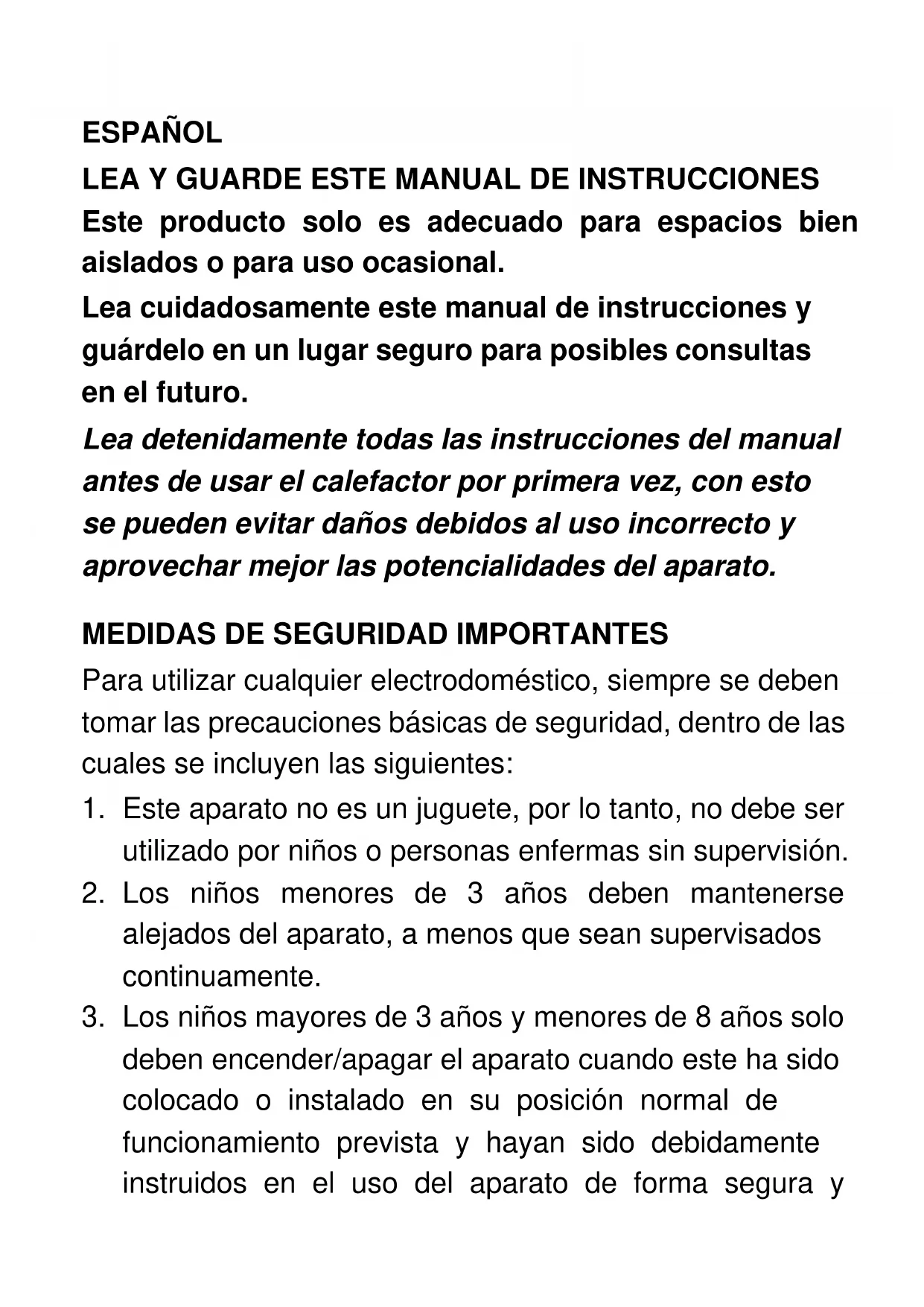 No utilice el calefactor para otro uso que no sea el previsto. Este aparato está destinado únicamente para uso doméstico.