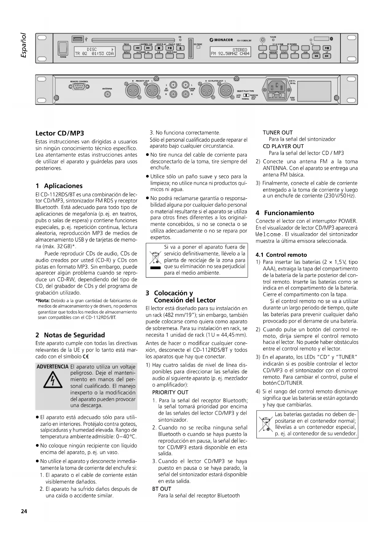 MANUAL DE USUARIO CD112RDSBT Monacor