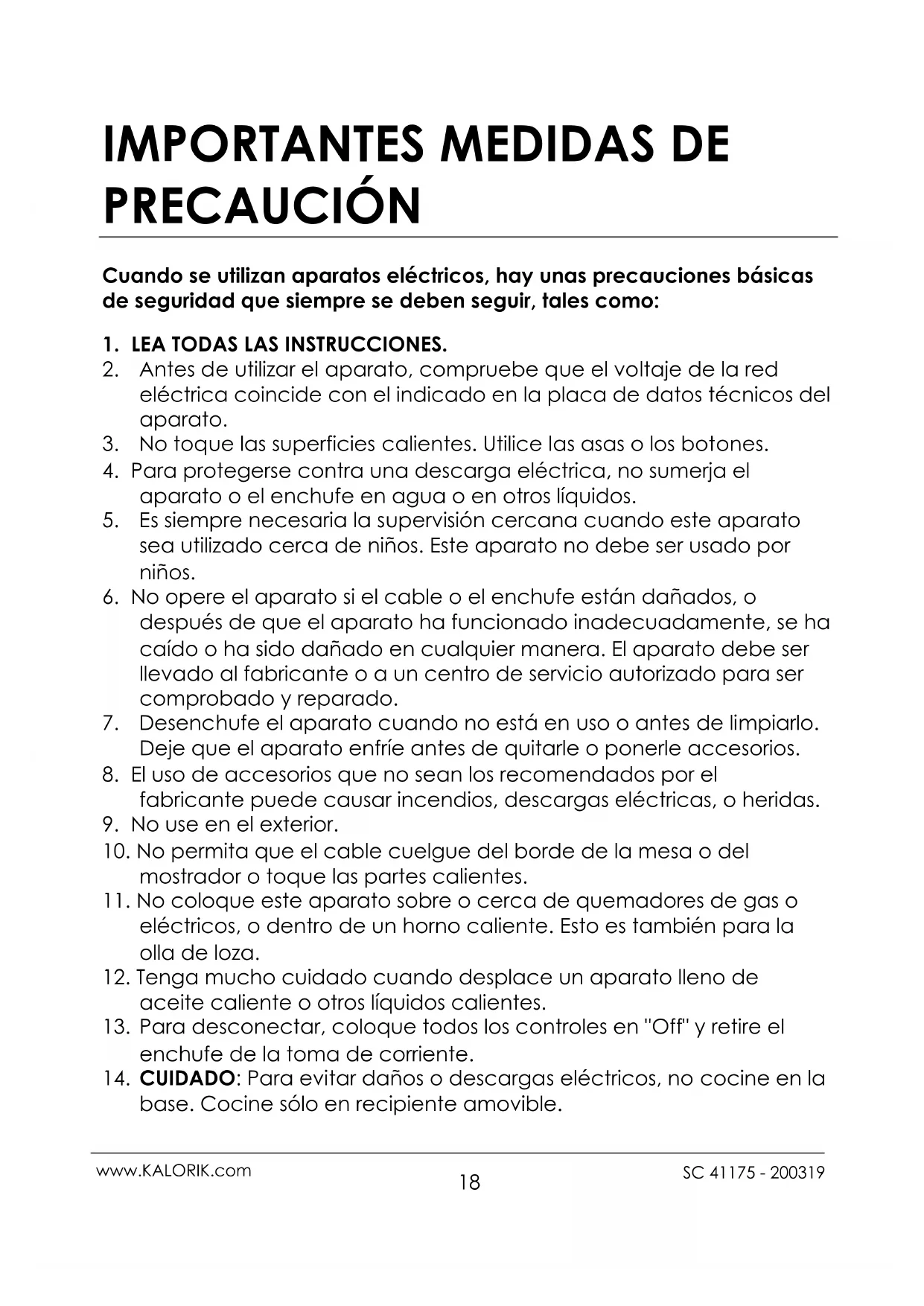 Encuentra gratis el manual del aparato SC 41175 KALORIK en formato PDF.