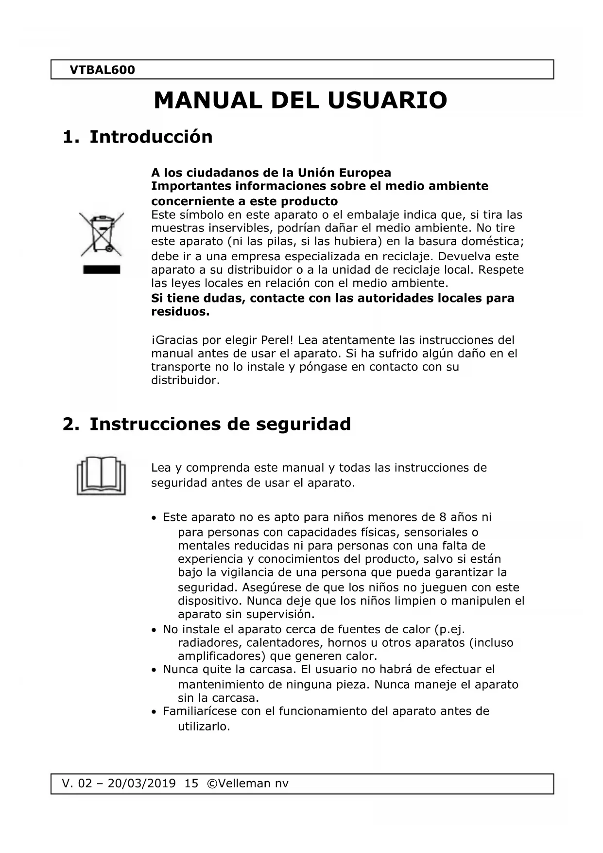 MANUAL DE USUARIO VTBAL600 Perel