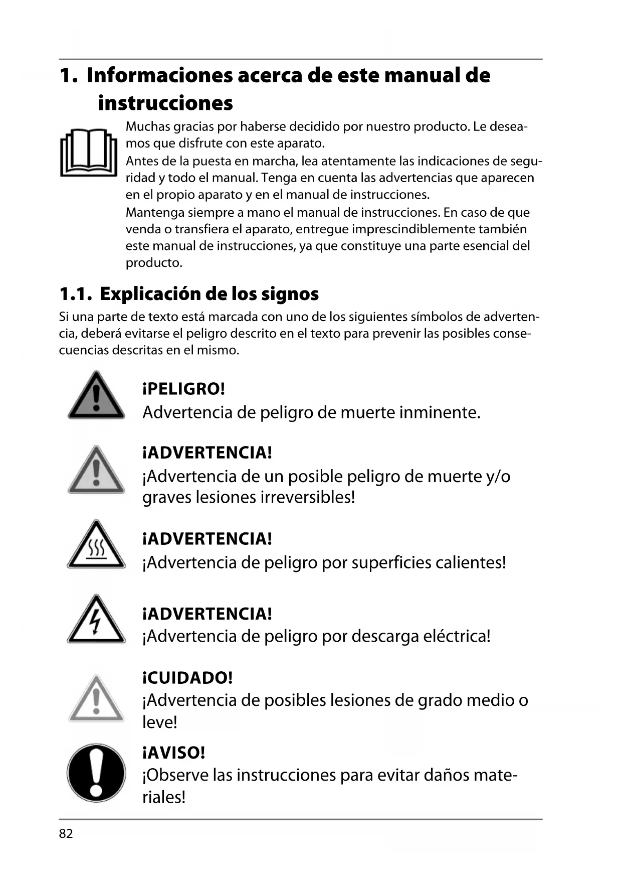 1. Informaciones acerca de este manual de instrucciones ......................... 82