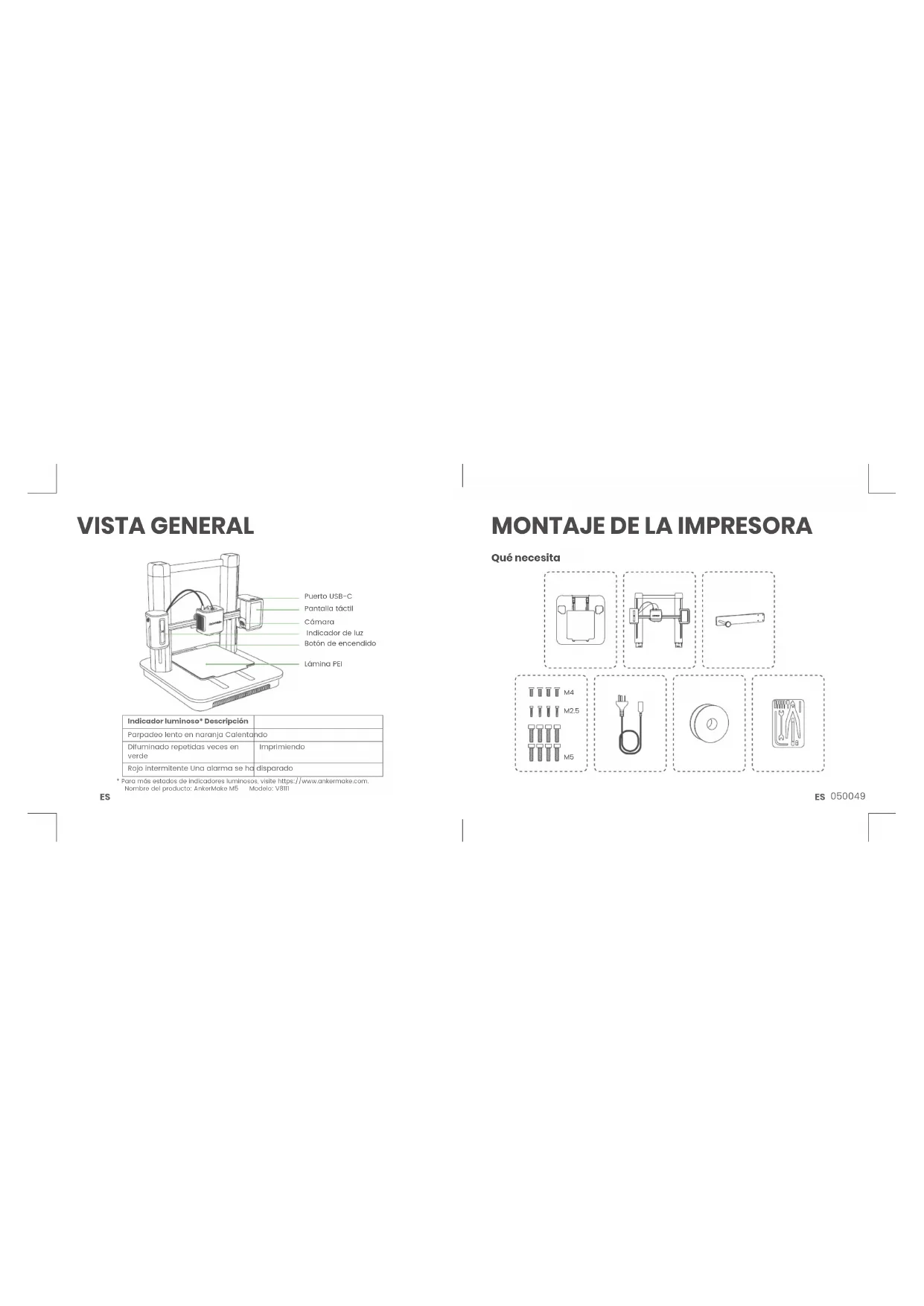 - Para más estados de indicadores luminosos, visite https://www.ankermake.com. Nombre del producto: AnkerMake M5 Modelo: V8111ES