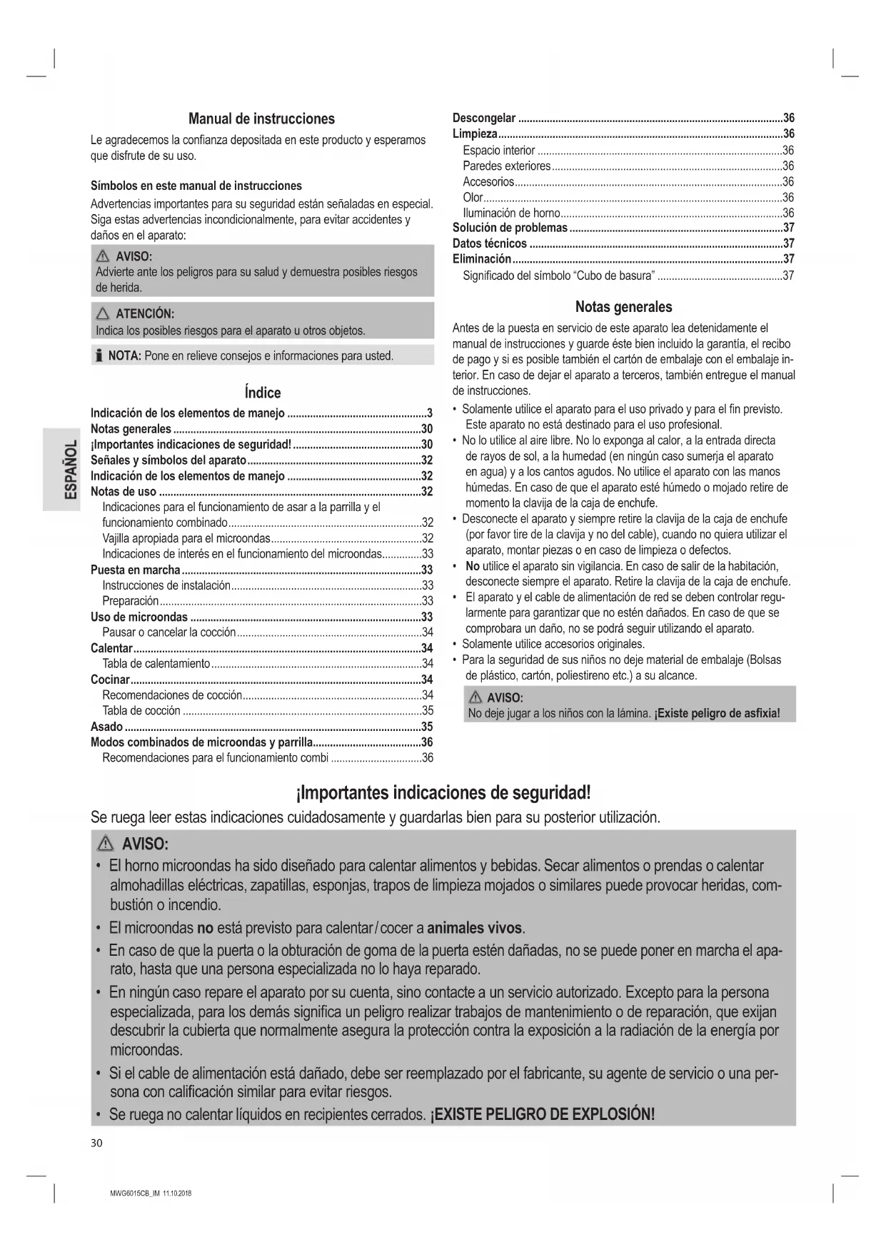 - Se ruega no calentar líquidos en recipientes cerrados. ¡EXISTE PELIGRO DE EXPLOSIÓN!31