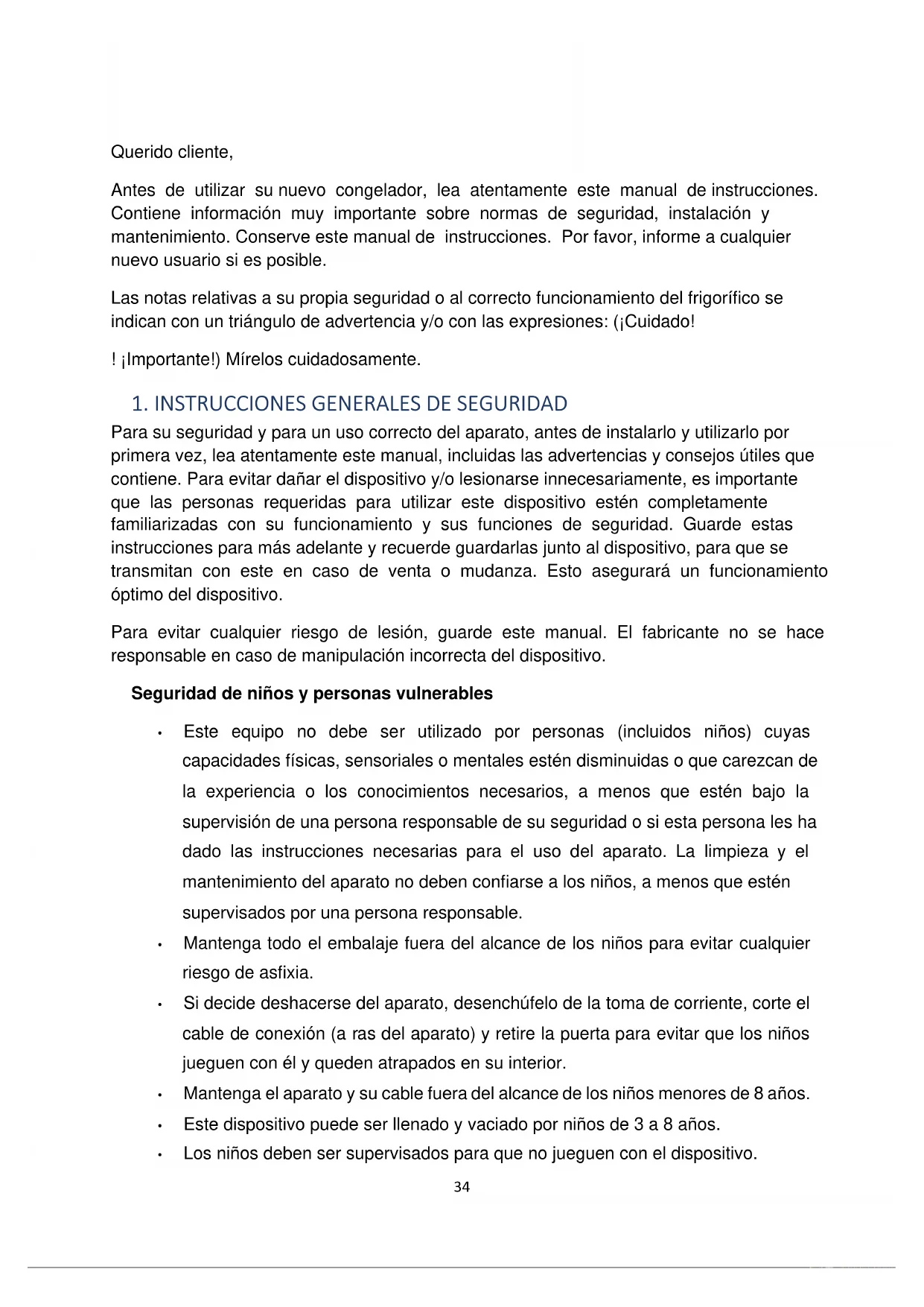 Para su seguridad y para un uso correcto del aparato, antes de instalarlo y utilizarlo por primera vez, lea atentamente este manual, incluidas las advertencias y consejos útiles que contiene. Para evitar dañar el dispositivo y/o lesionarse innecesariamente, es importante que las personas requeridas para utilizar este dispositivo estén completamente familiarizadas con su funcionamiento y sus funciones de seguridad. Guarde estas instrucciones para más adelante y recuerde guardarlas junto al dispositivo, para que se transmitan con este en caso de venta o mudanza. Esto asegurará un funcionamiento óptimo del dispositivo. Para evitar cualquier riesgo de lesión, guarde este manual. El fabricante no se hace responsable en caso de manipulación incorrecta del dispositivo. Seguridad de niños y personas vulnerables