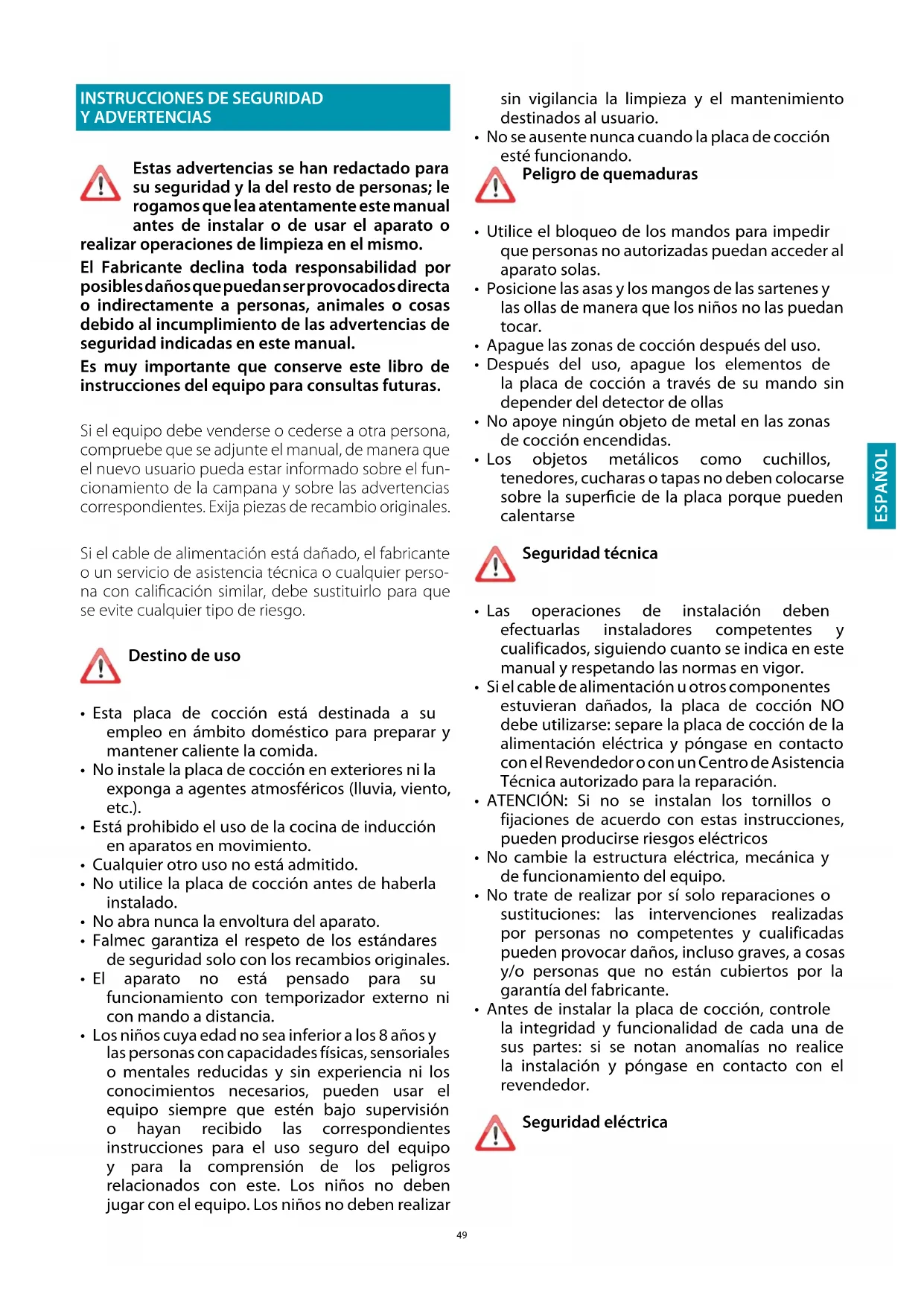 - Falmec garantiza el respeto de los estándares de seguridad solo con los recambios originales.