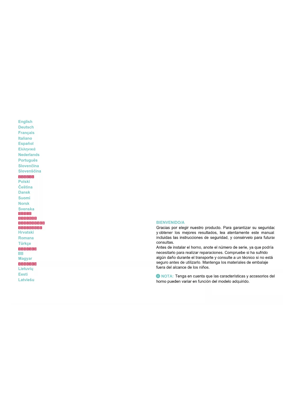 NOTA: Tenga en cuenta que las características y accesorios del horno pueden variar en función del modelo adquirido.ÍNDICE