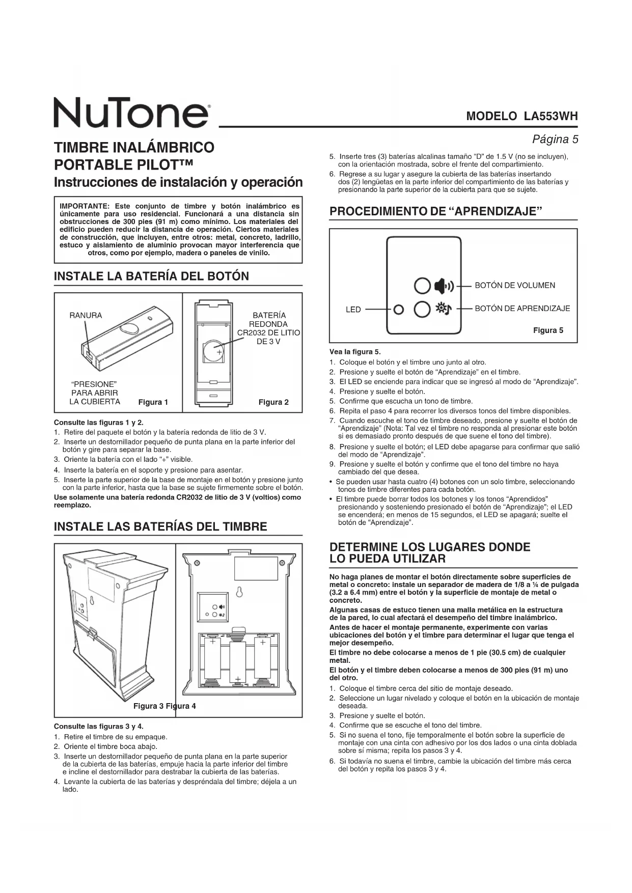 LA553WH - Timbres de puertas NuTone - Manual de uso y guía de instrucciones gratis