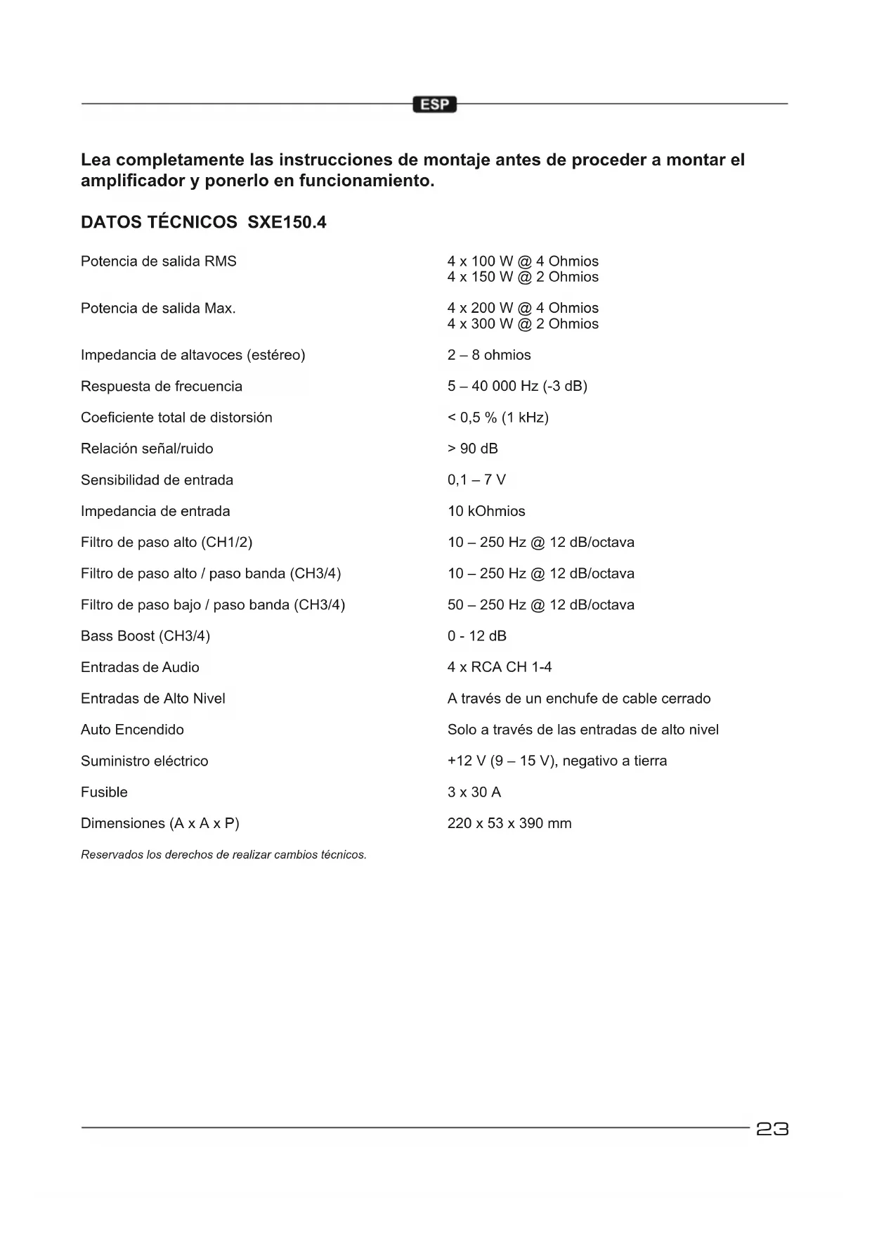 MANUAL DE USUARIO Signum SXE150.4 ESX