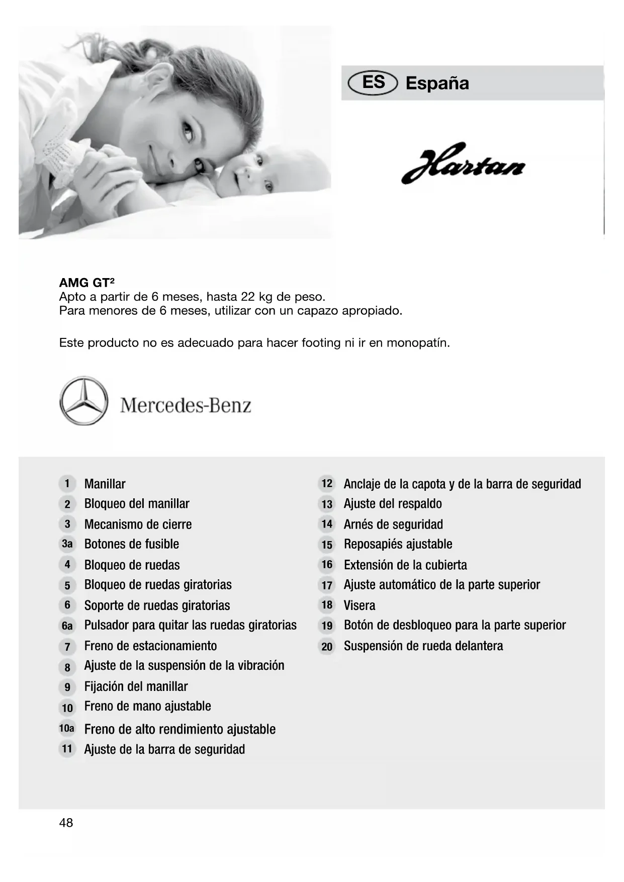 AMG GT² Apto a partir de 6 meses, hasta 22 kg de peso. Para menores de 6 meses, utilizar con un capazo apropiado. Este producto no es adecuado para hacer footing ni ir en monopatín.