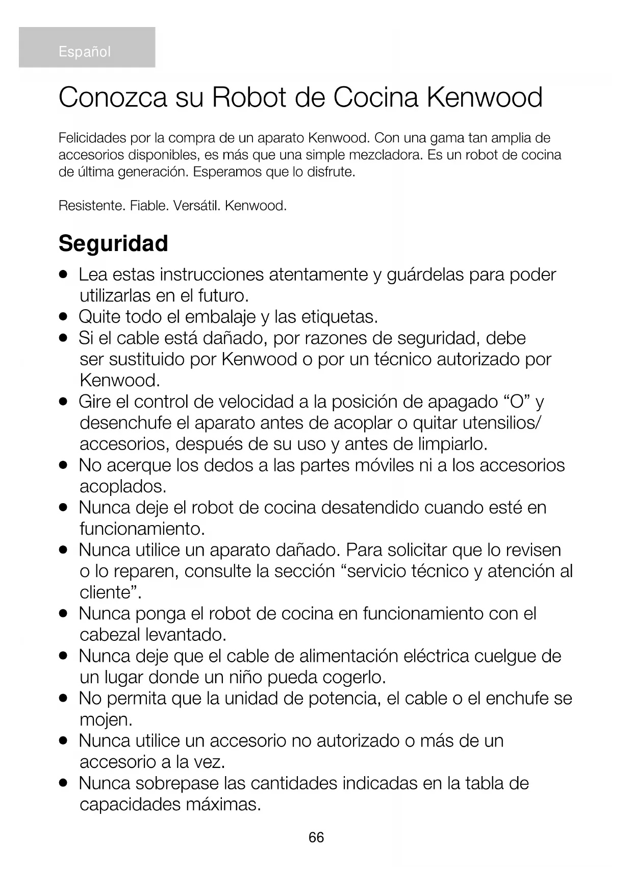 Utilice este aparato únicamente para el uso doméstico al que está destinado. Kenwood no se hará cargo de responsabilidad alguna si el aparato se somete a un uso inadecuado o si no se siguen estas instrucciones. Español68 Antes de enchufar el aparato