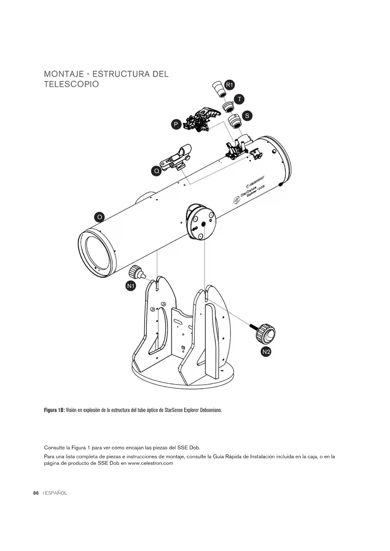 Figura 1A: Visión en explosión de la base de la base de StarSense Explorer Dobsoniano.86 I ESPAÑOL