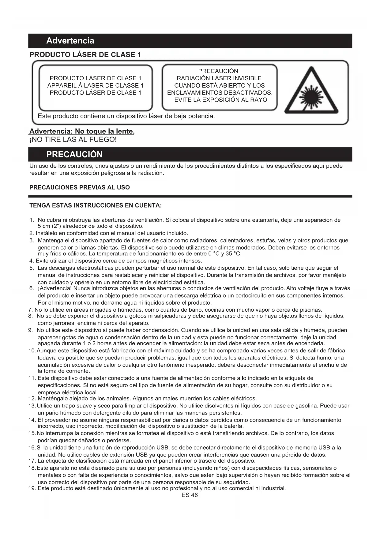 Este producto contiene un dispositivo láser de baja potencia.