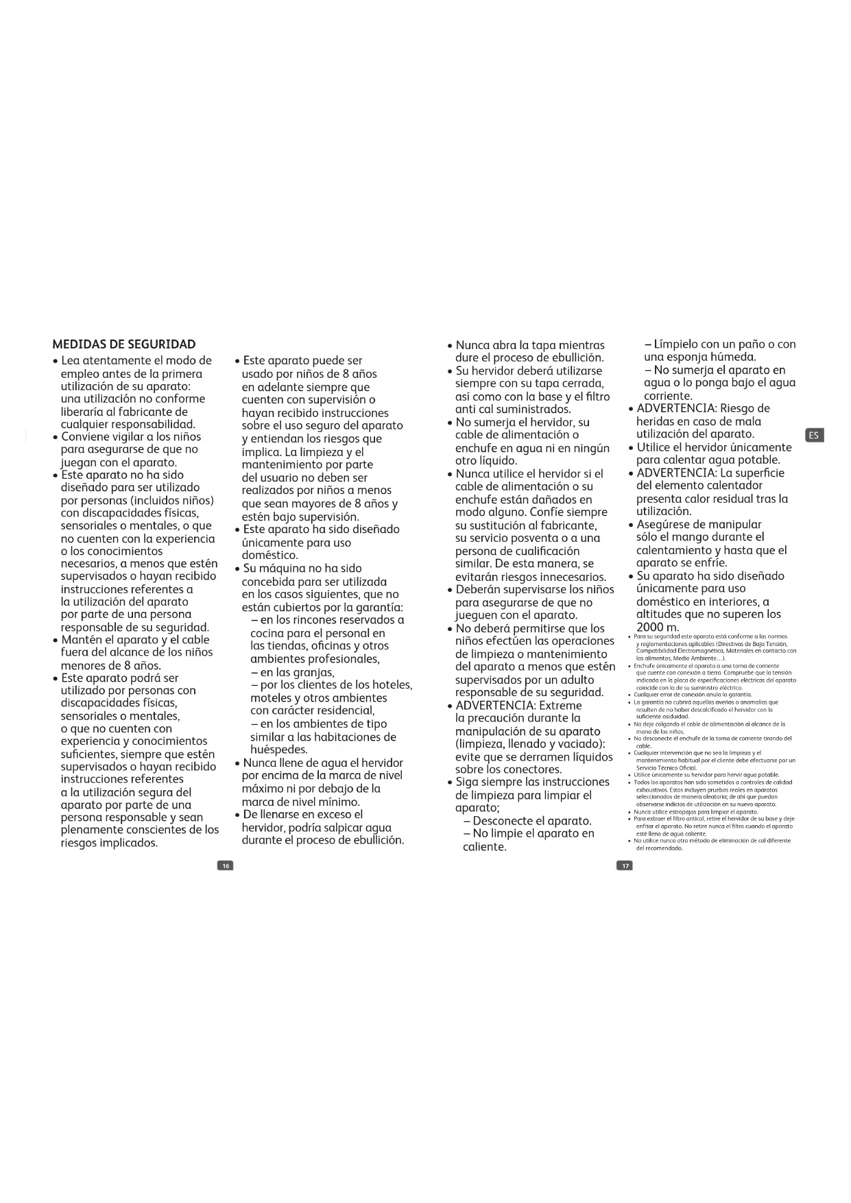 - La garantía no cubrirá aquellas averías o anomalías que resulten de no haber descalcificado el hervidor con la suficiente asiduidad.