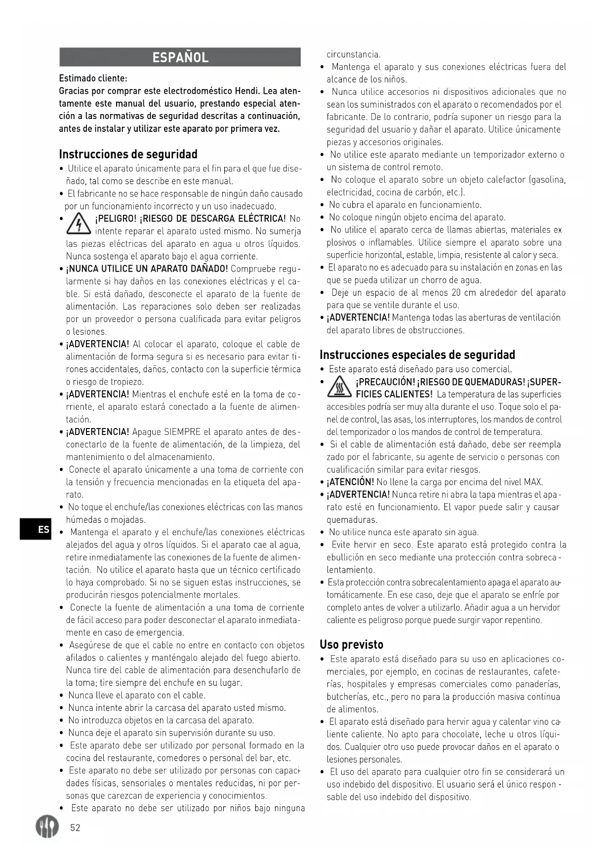 ESPAÑOL Estimado cliente: Gracias por comprar este electrodoméstico Hendi. Lea aten