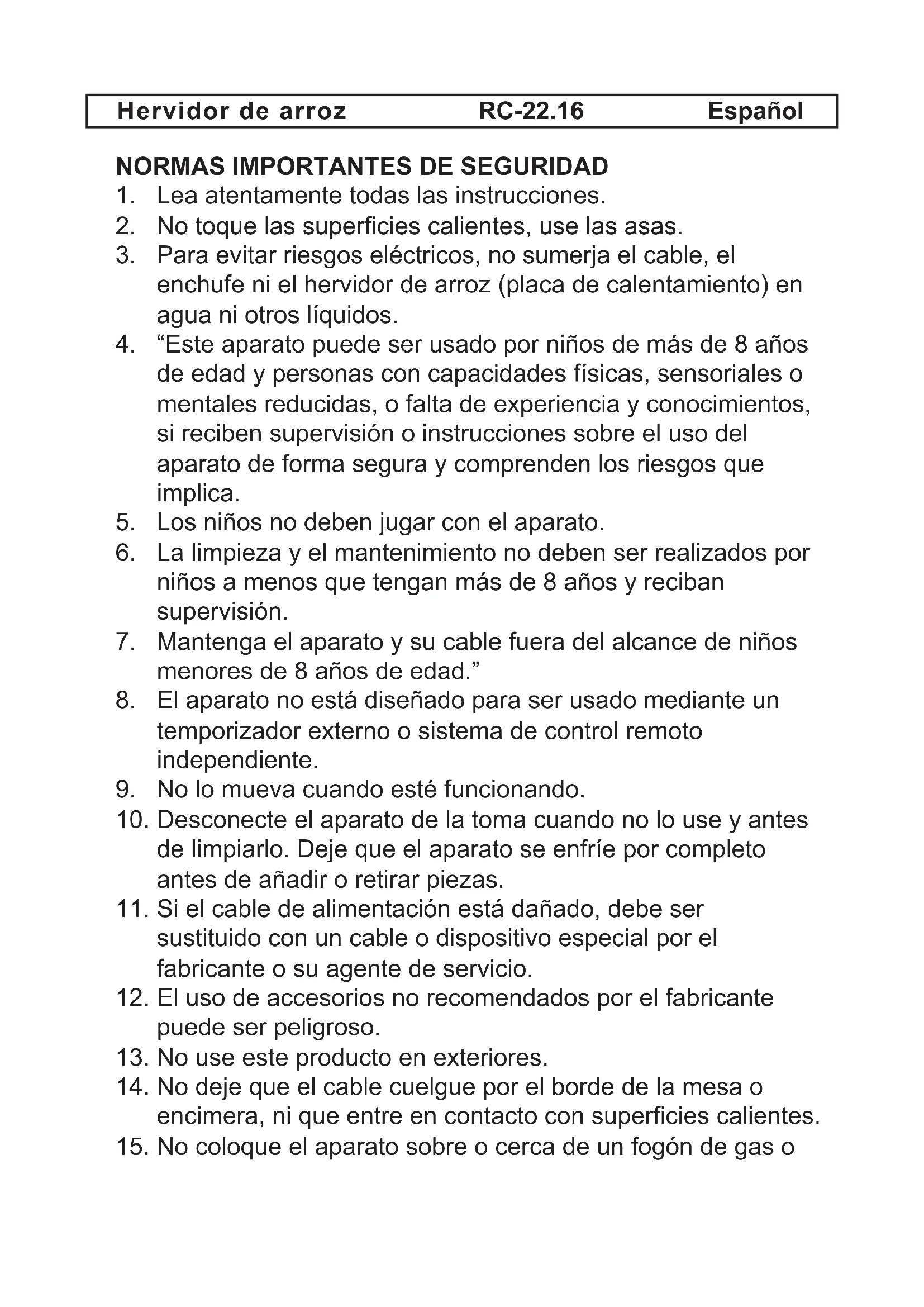 hasta que esté listo para cocinar. En caso contrario, podría pasar el arroz. Si el recipiente no está en el hervidor, no comenzará a funcionar. Q`?