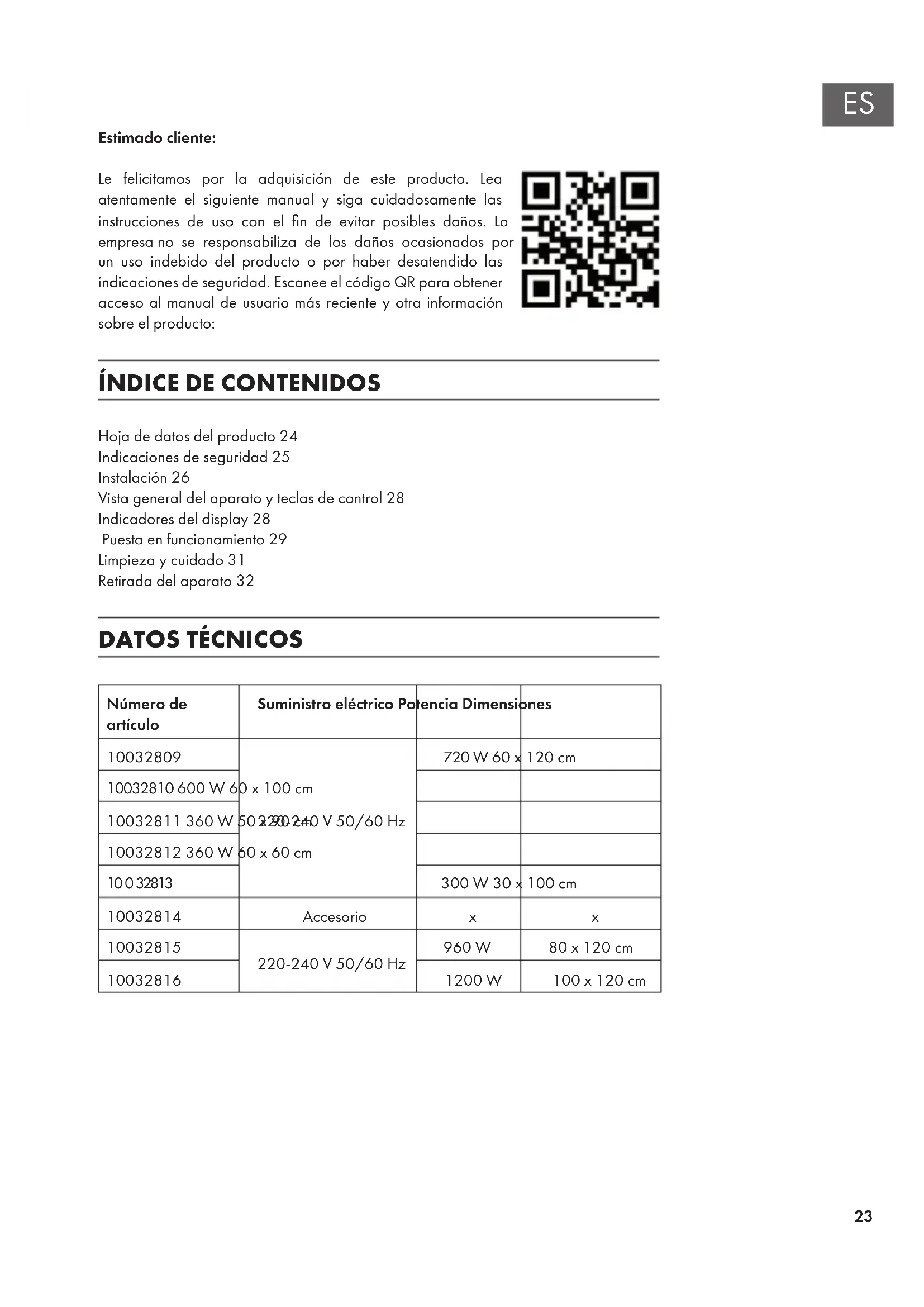 Estimado cliente: Le felicitamos por la adquisición de este producto. Lea atentamente el siguiente manual y siga cuidadosamente las instrucciones de uso con el n de evitar posibles daños. La empresa no se responsabiliza de los daños ocasionados por un uso indebido del producto o por haber desatendido las indicaciones de seguridad. Escanee el código QR para obtener acceso al manual de usuario más reciente y otra información sobre el producto: