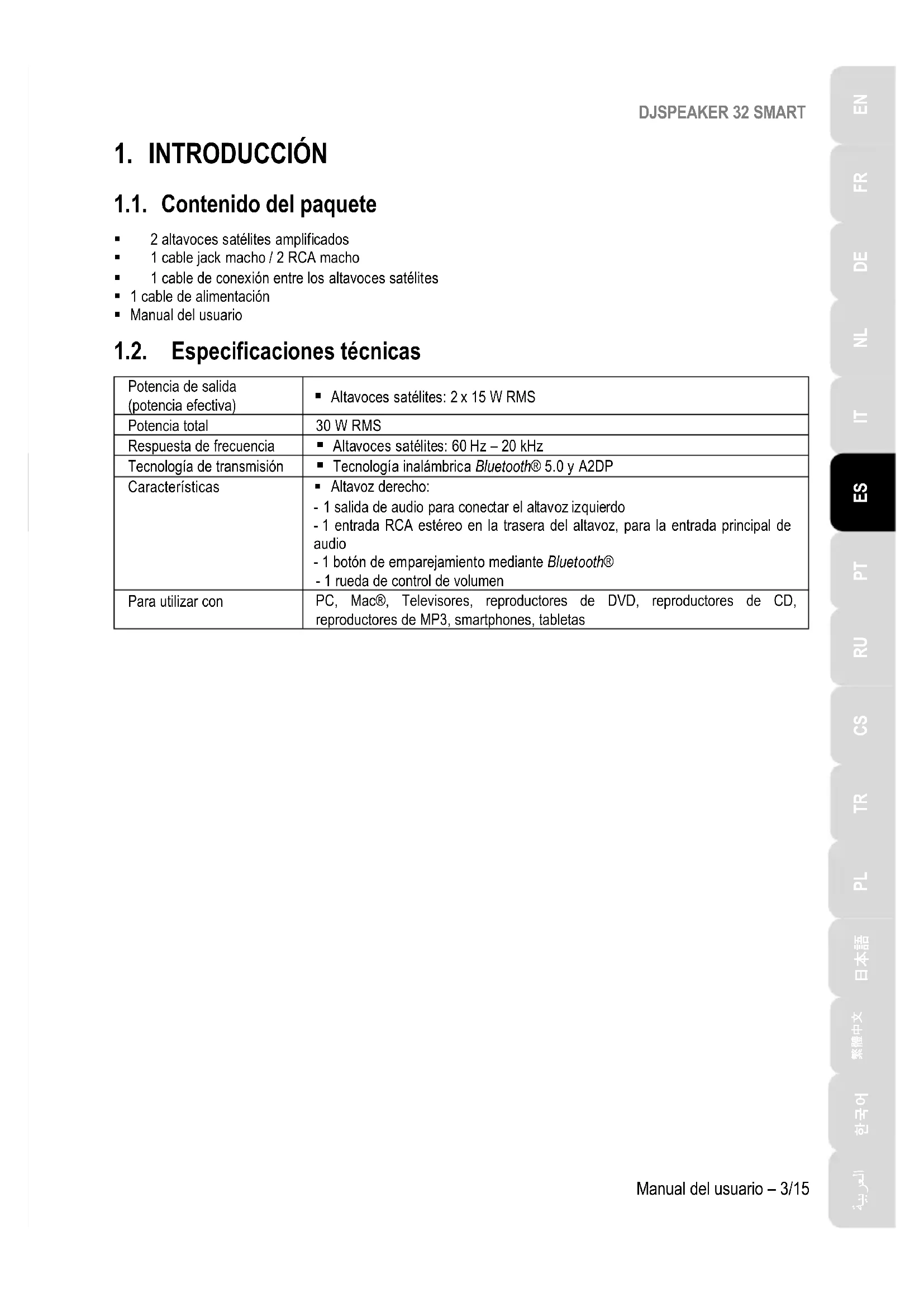 ESDJSPEAKER 32 SMART 2/15 – Manual del usuario ÍNDICE