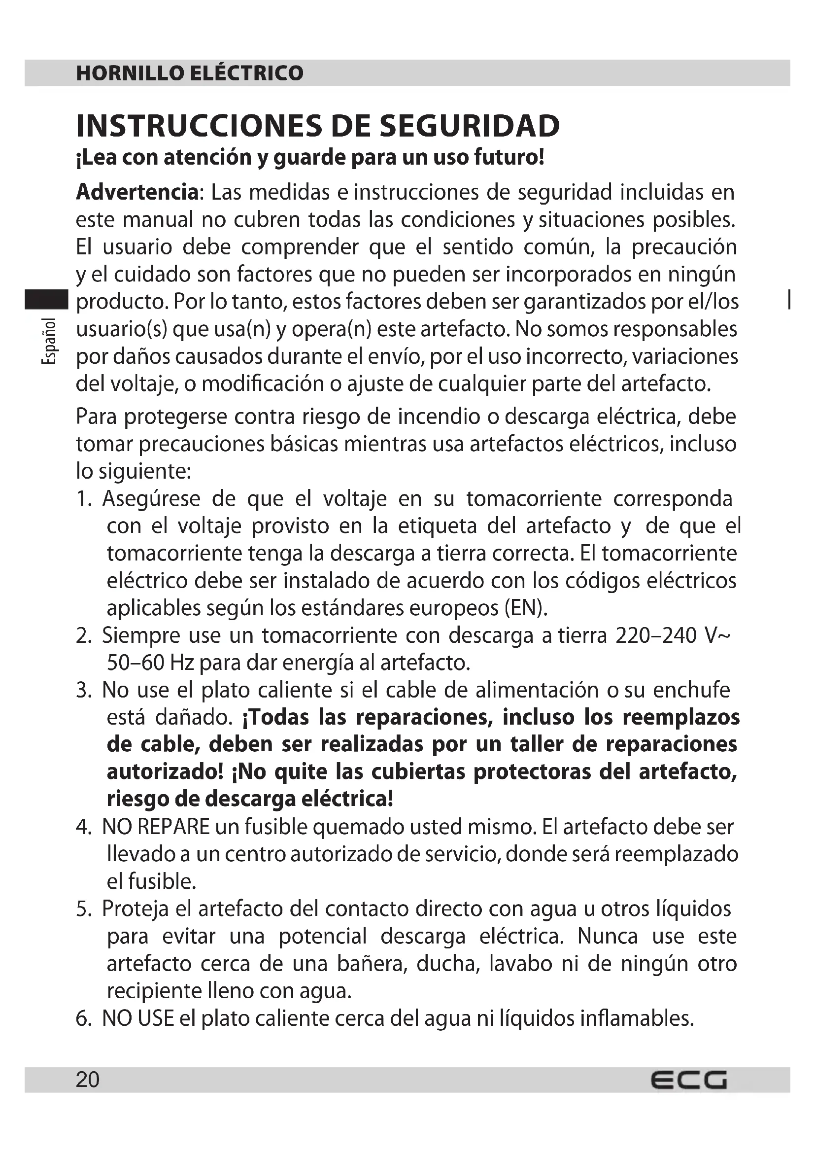 EV 1510 - Cocina ECG - Manual de uso y guía de instrucciones gratis