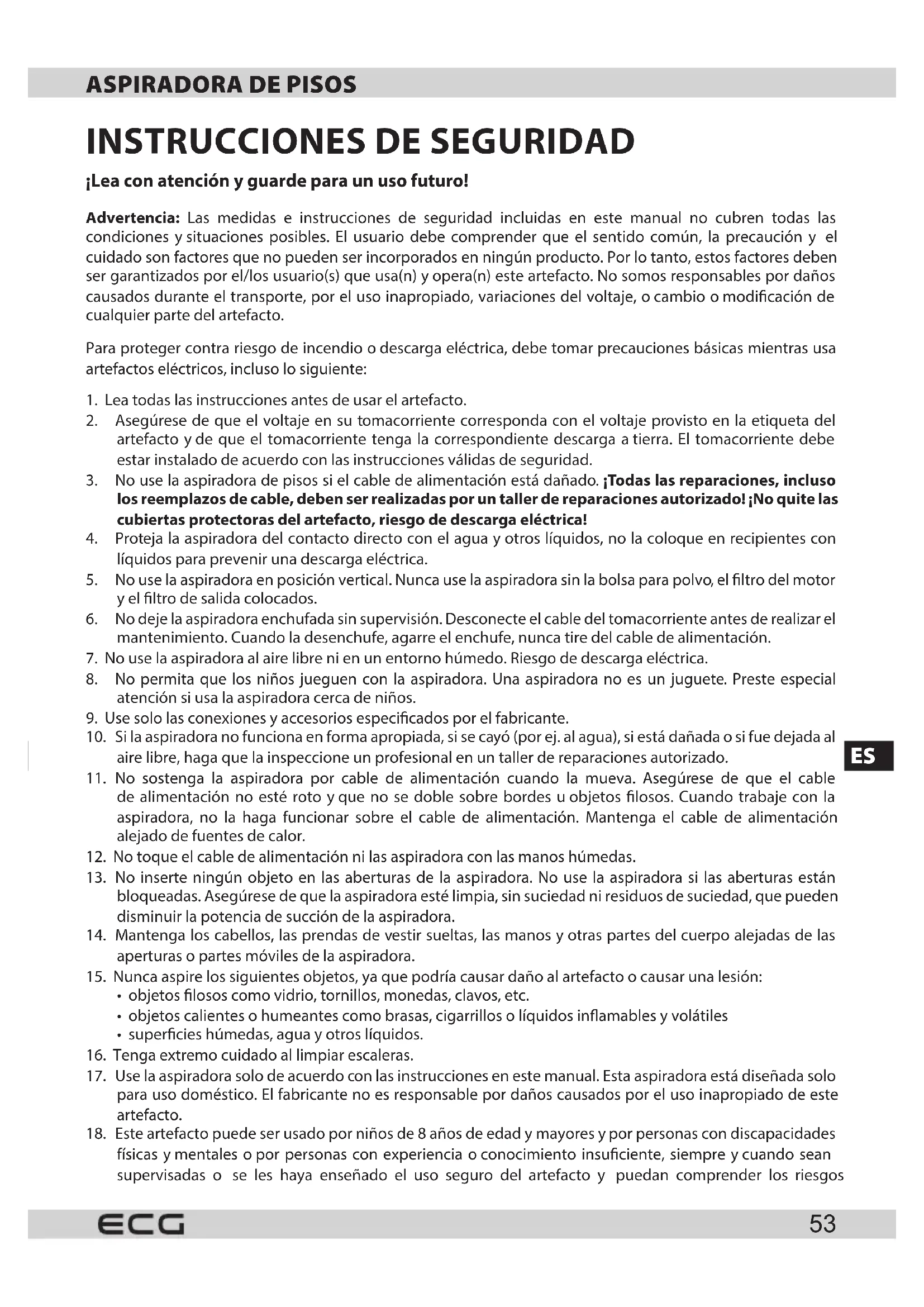 Descarga las instrucciones para tu Aspiradora en formato PDF gratis! Encuentra tus instrucciones VP 3149 S - ECG y toma tu dispositivo electrónico nuevamente en la mano. En esta página están publicados todos los documentos necesarios para el uso de su dispositivo. VP 3149 S de la marca ECG.