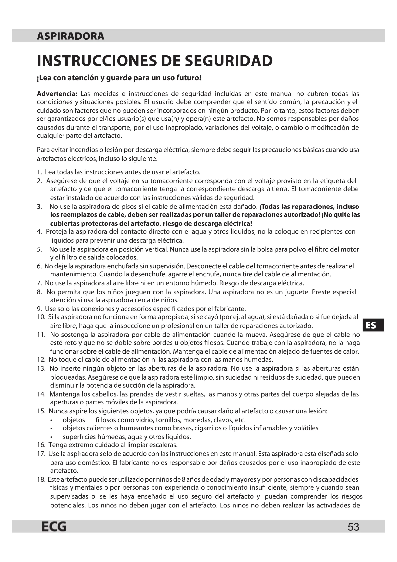 Descarga las instrucciones para tu Aspiradora en formato PDF gratis! Encuentra tus instrucciones VP 2122 S - ECG y toma tu dispositivo electrónico nuevamente en la mano. En esta página están publicados todos los documentos necesarios para el uso de su dispositivo. VP 2122 S de la marca ECG.