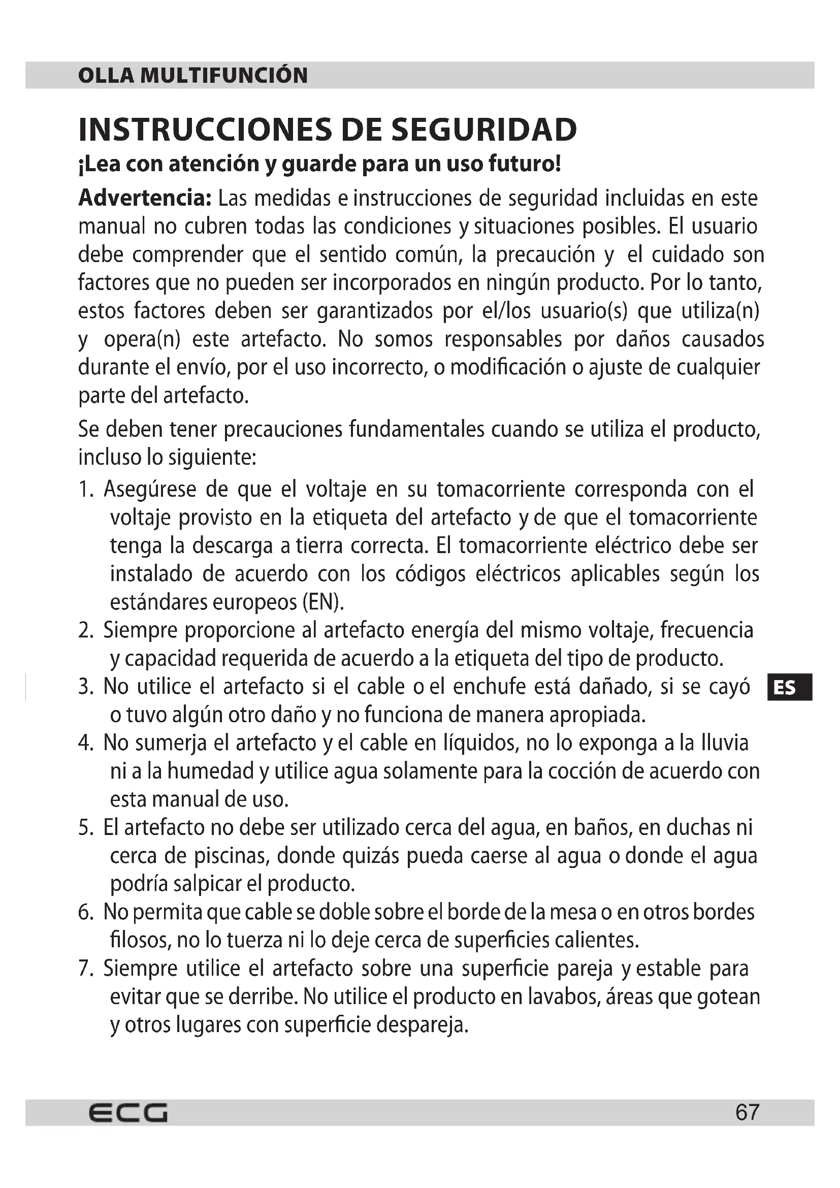 artefacto puede ser utilizado por niños de 8 años de edad en adelante, siempre que estén bajo supervisión permanente. Este artefacto puede ser utilizado por personas con capacidades físicas, sensoriales omentales reducidas, o que carezcan de experiencia o conocimientos, si se las supervisa oinstruye con respecto al uso del artefacto en forma segura ycomprenden los riesgos involucrados. Conserve el artefacto yel cable de alimentación fuera del alcance de los niños menores de 8 años de edad. Los niños no deben realizar la limpieza ymantenimiento del usuario. Do not immerse in water! – ¡No sumerja el producto en agua!ES