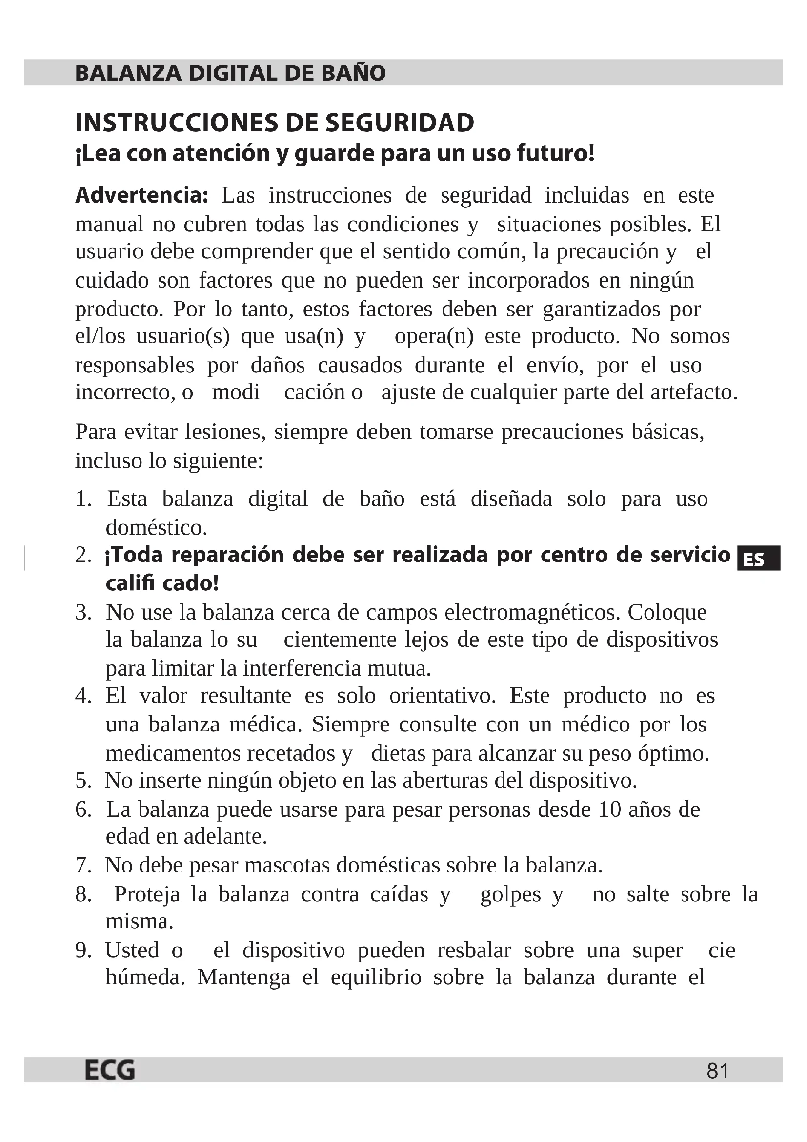 1.Esta balanza digital de bazo está diseñada solo para uso dométrico.