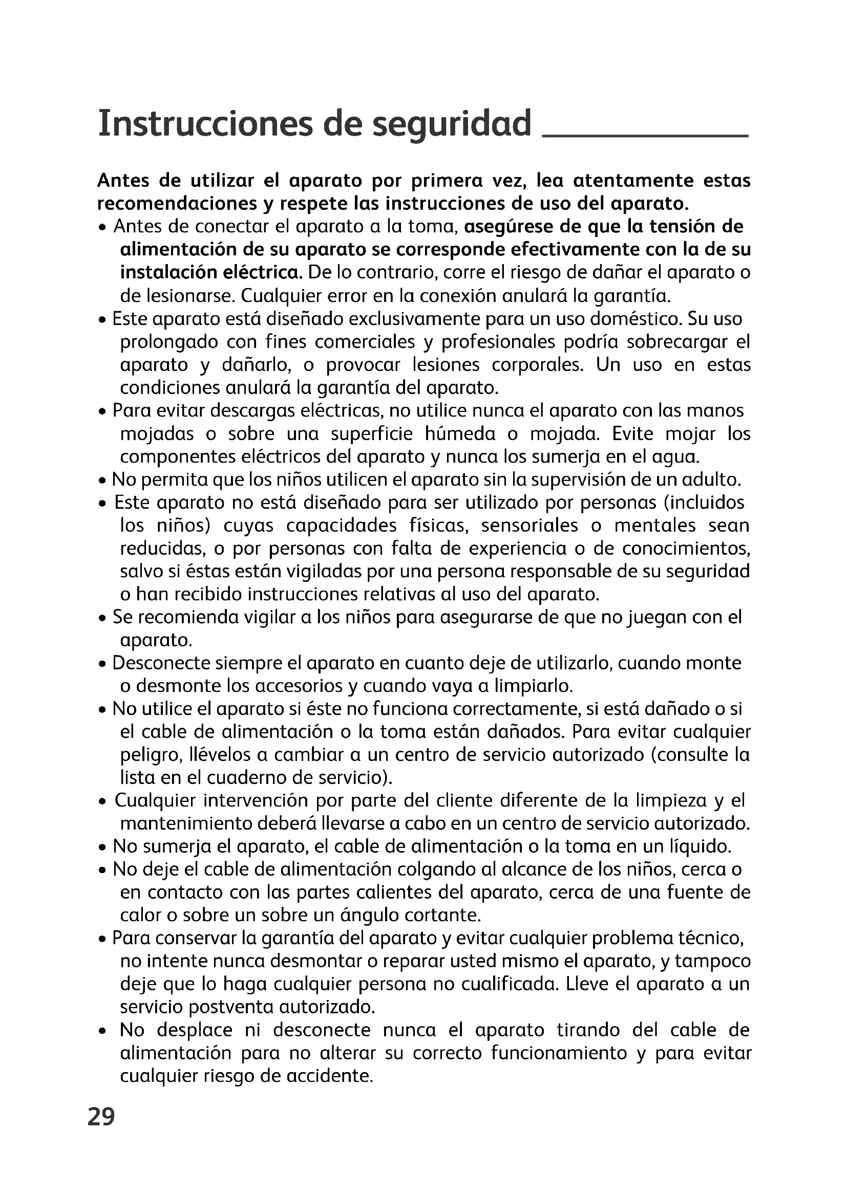 SM_MIXER_PREPLINE_EO_2550865-02_2550865-02 09/12/10 16:22 Page29• El uso de elementos y de accesorios no recomendados por el fabricante puede provocar lesiones corporales, dañar el aparato, ocasionar su mal funcionamiento y anular su garantía.
